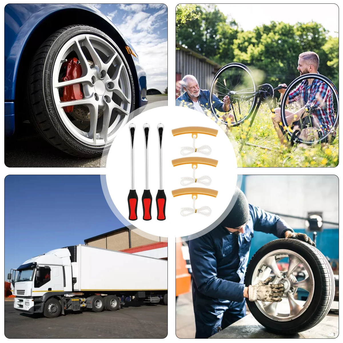 [Wide Applications] The tire lever tire set is used to reduce wheel edges when loading and unloading tires, suitable for removing motorcycle tires, small mechanical tires, recreational tires, wheelchairs, and other complete sets of tires.