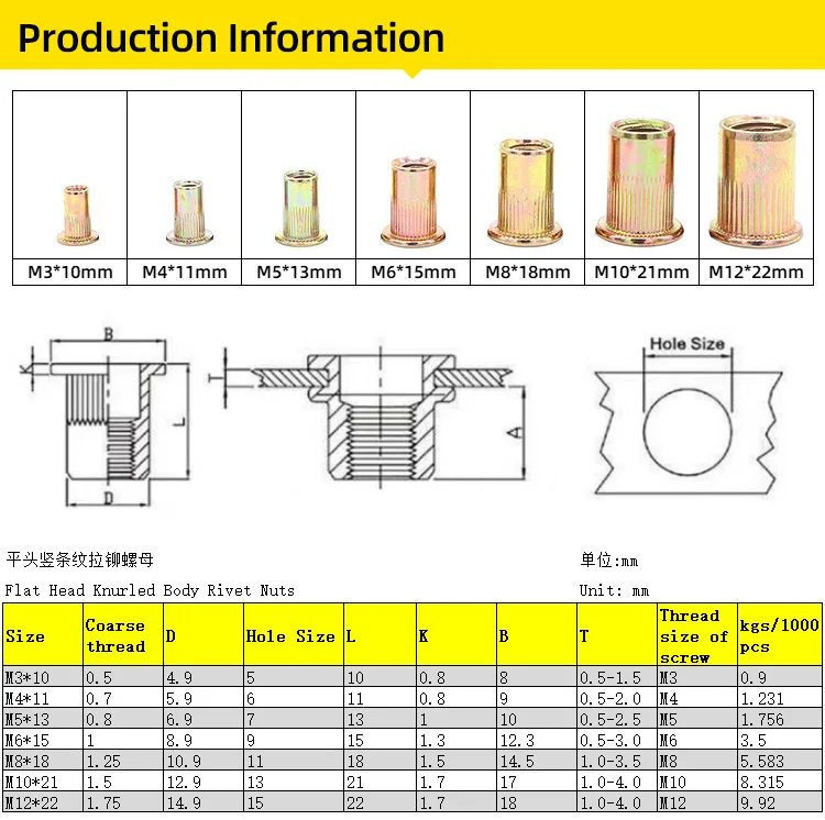- Size: M3 M4 M5 M6 M8 M10 M12