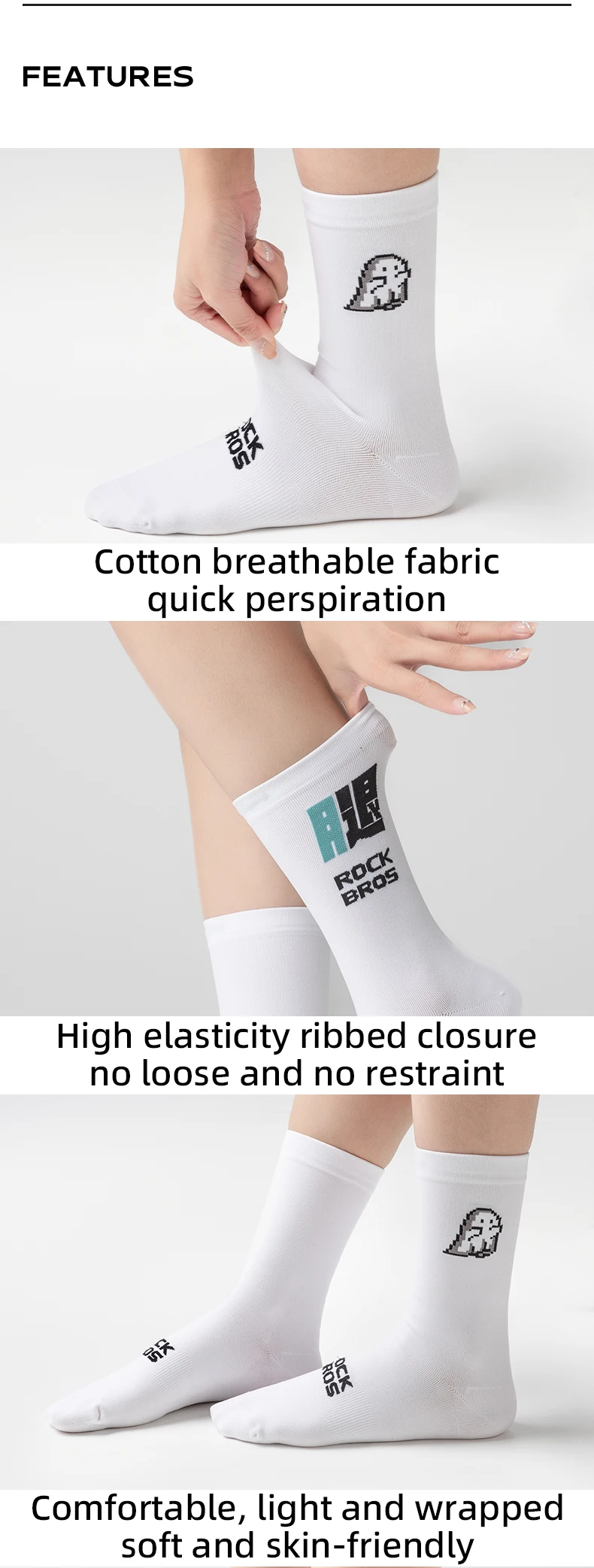 ROCKBROS Cycling Socks Breathable Sweat-wicking High Elastic Soft Knee-high Socks Men Women Outdoor Sports Jogging Cycling Socks