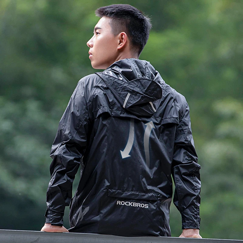 ROCKBROS Cycling Waterproof Jacket Men Breathable Reflective Hooded Raincoat Waterproof Outdoor Sport Windbreaker European Size