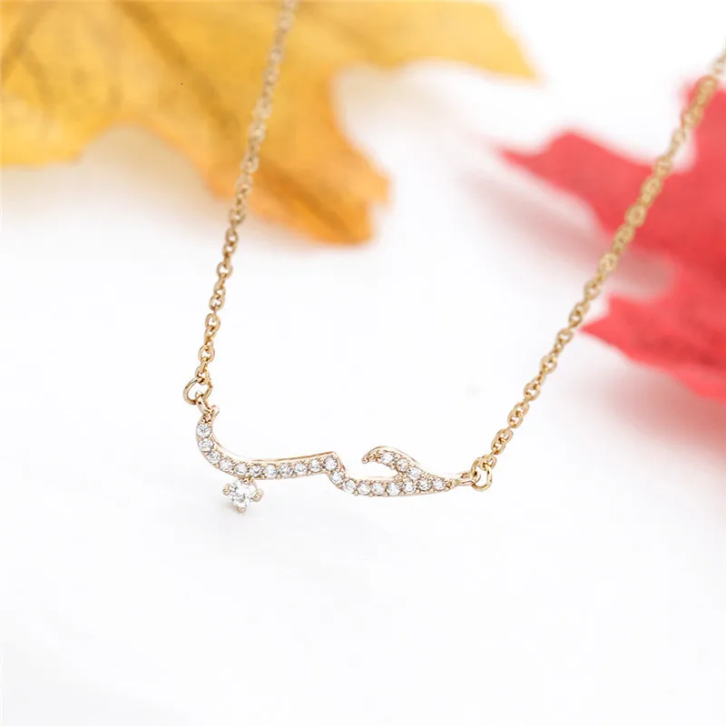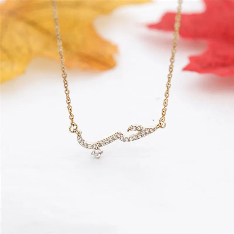 Rose Arabic Love Stainless Steels Necklace Women Islamic Filled Arabic Crystal Pendant Chain Bridesmaid Jewellery Gift