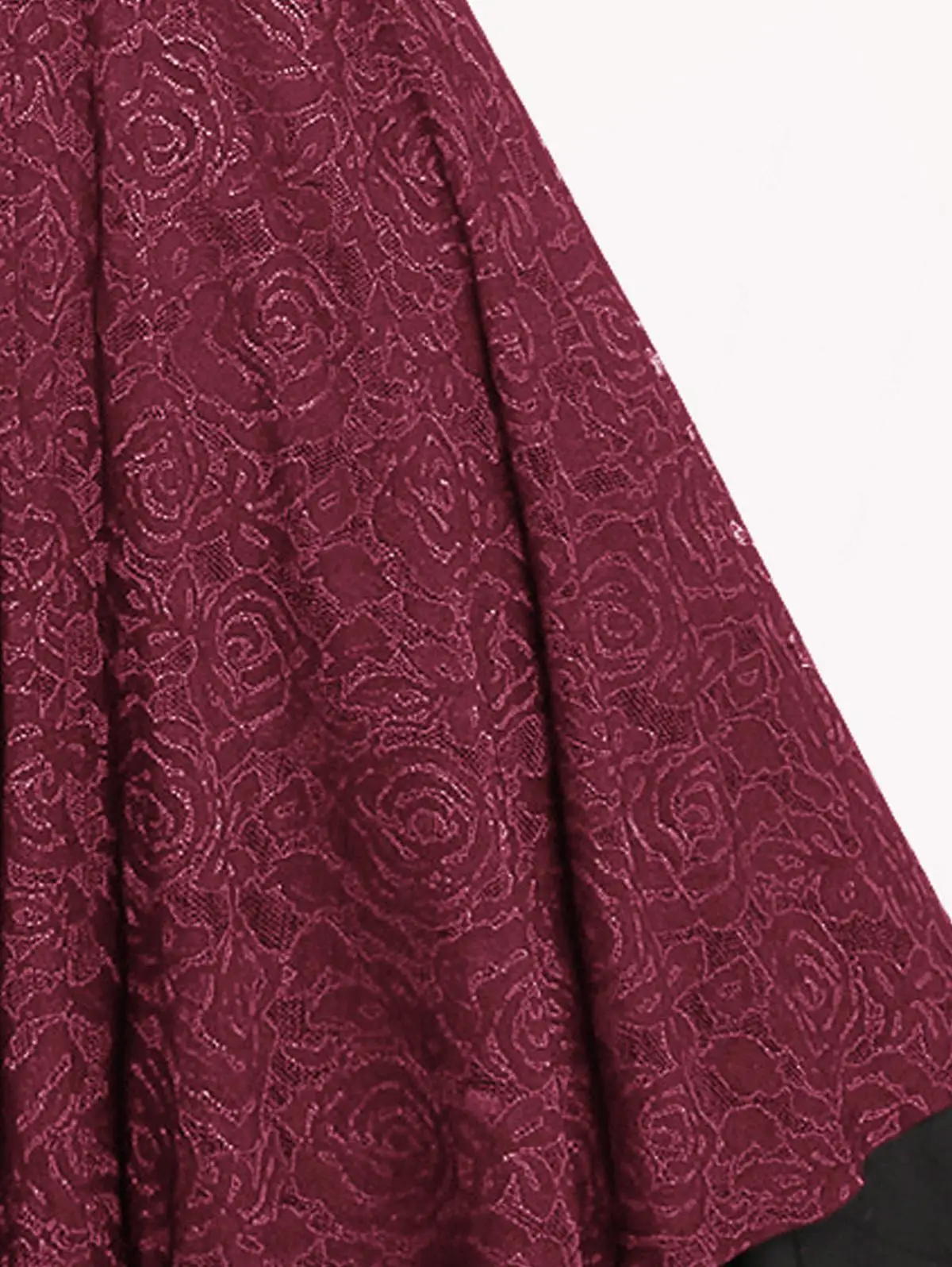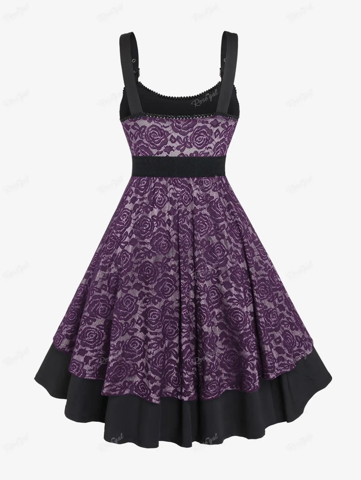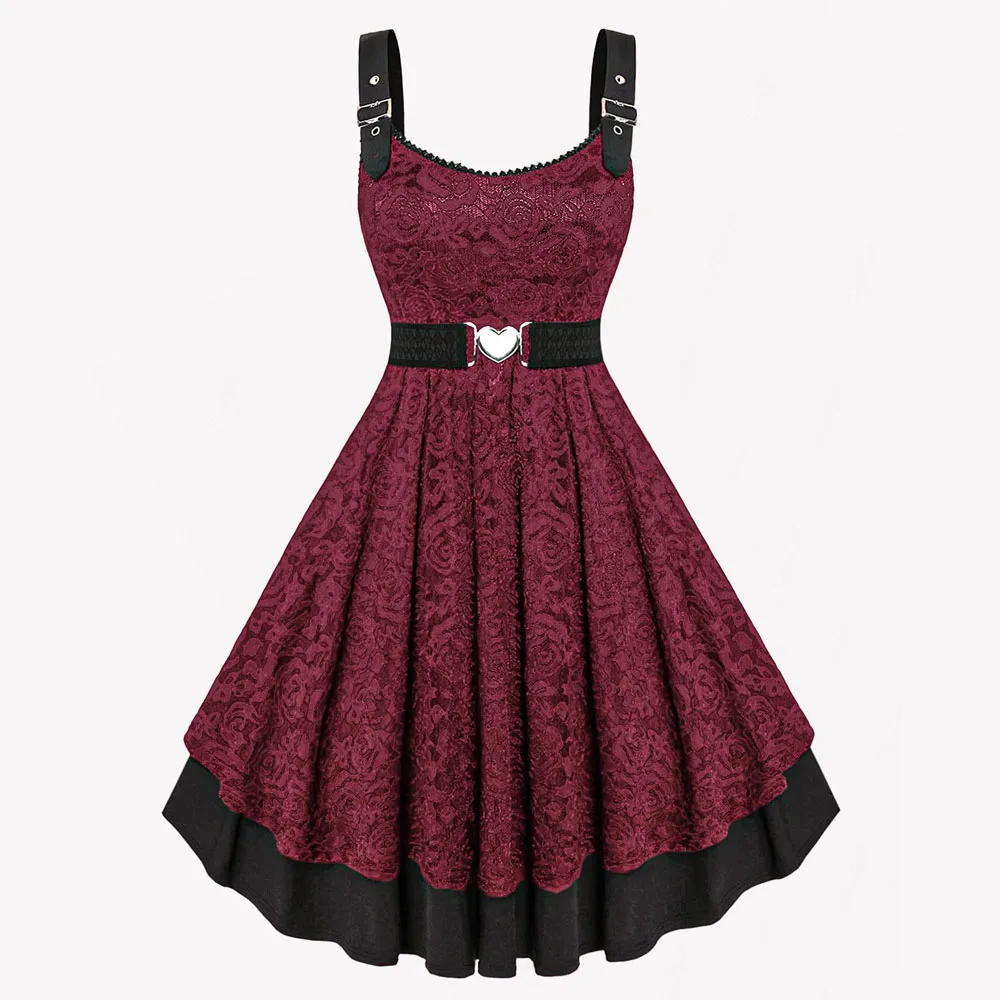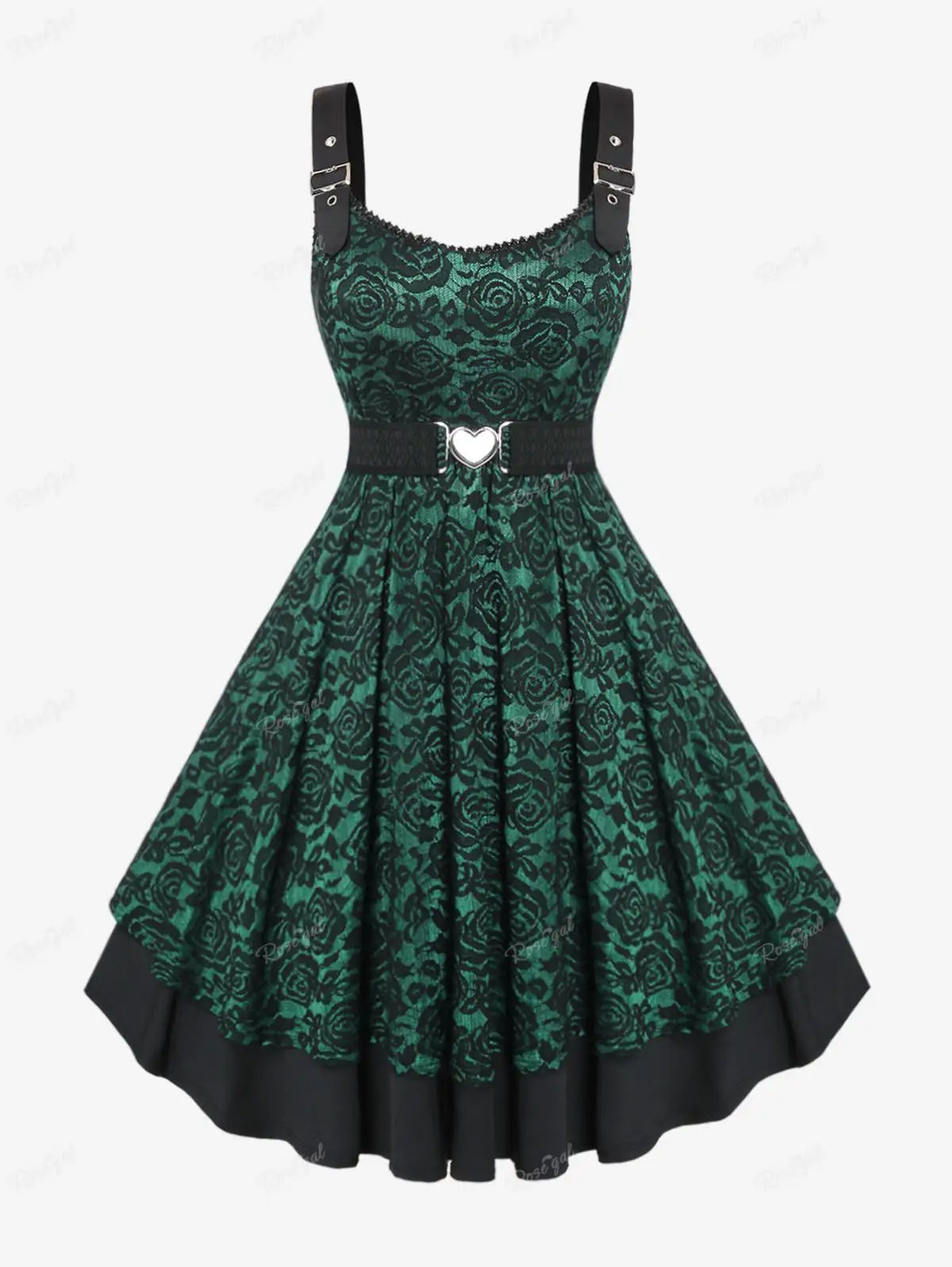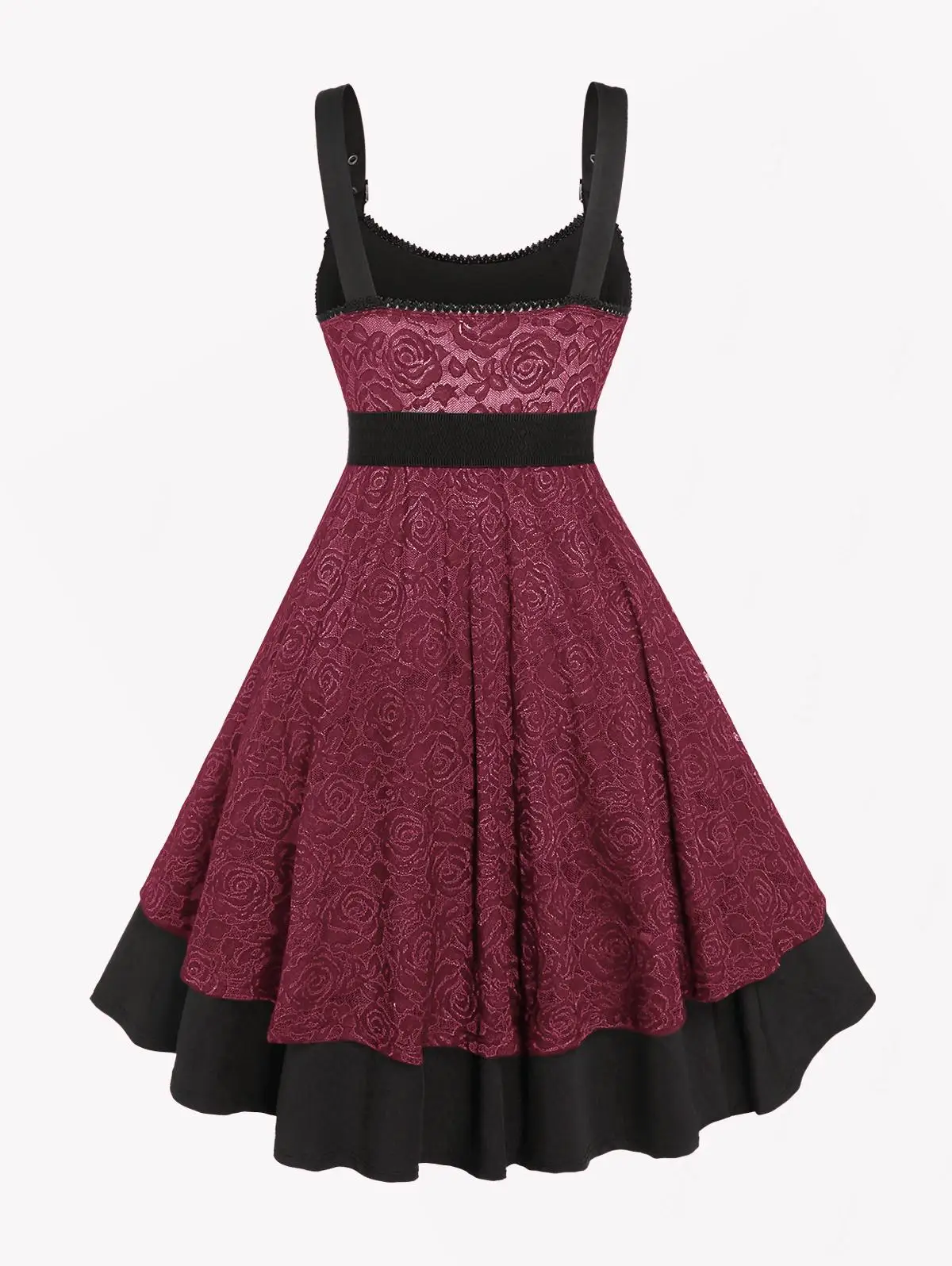 ROSEGAL Plus Size 1950s Vintage Floral Lace Jacquard Belt Dress Women Cocktail Party Dress Sleeveless Fit And Flare Vestidos