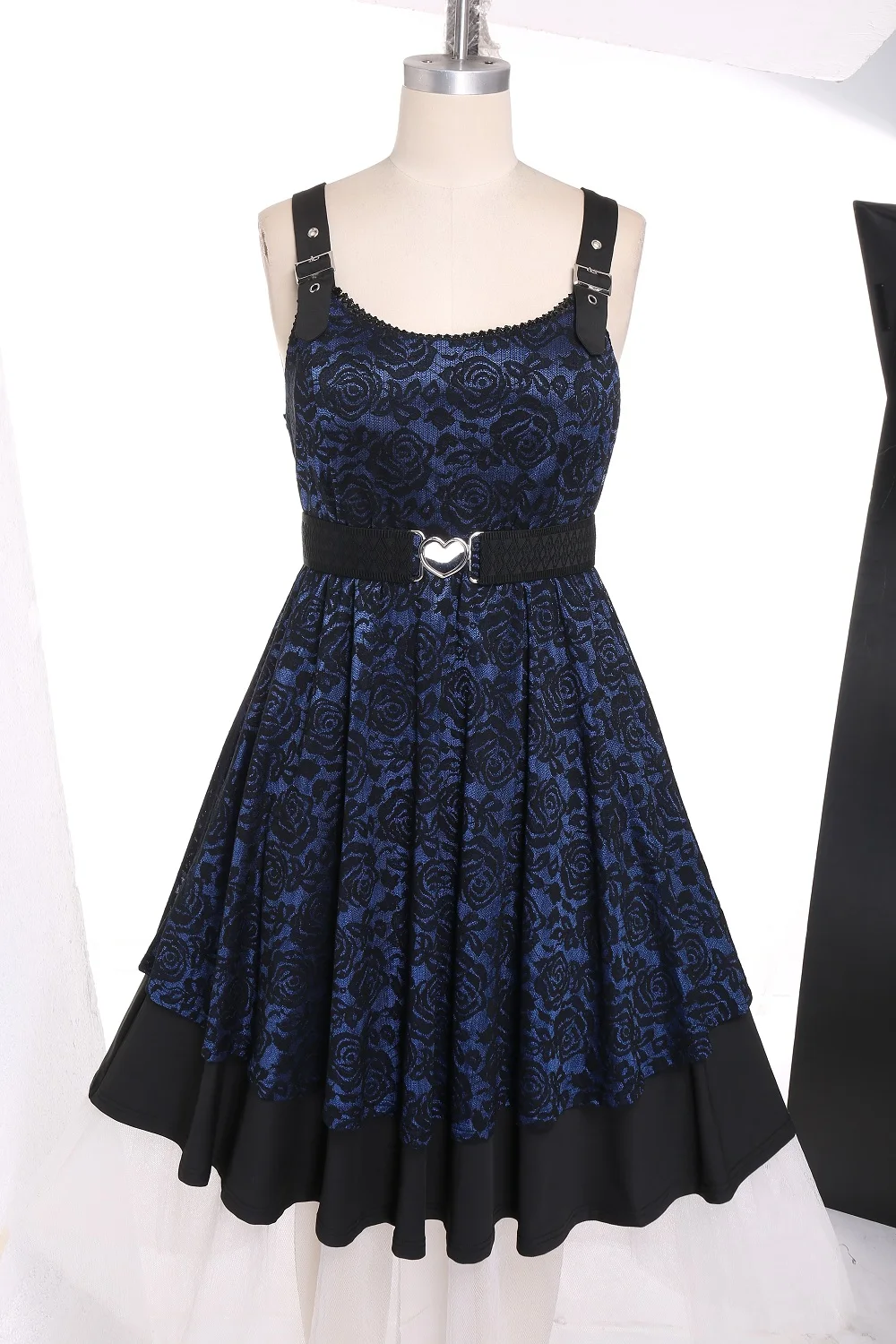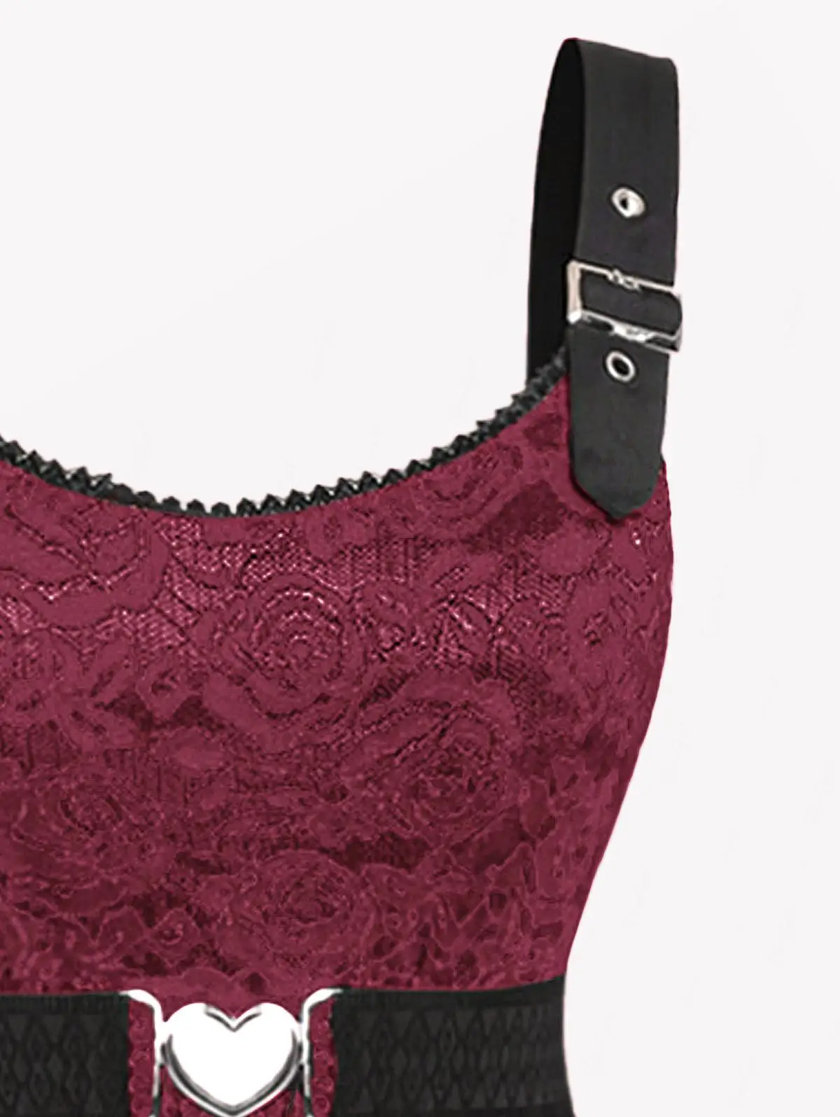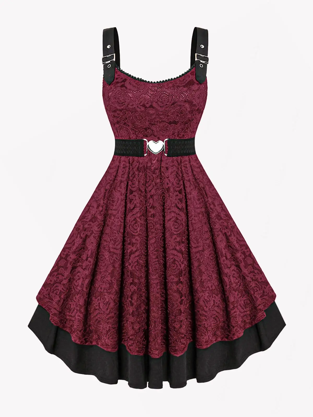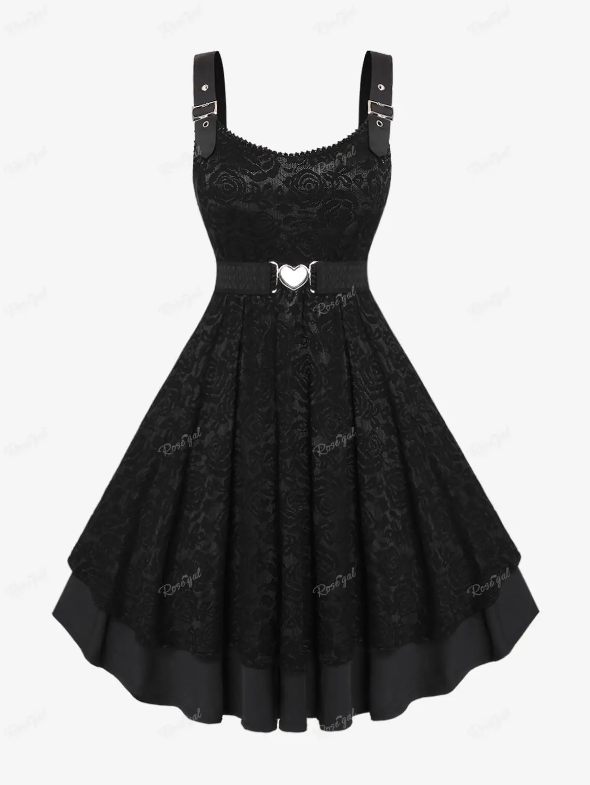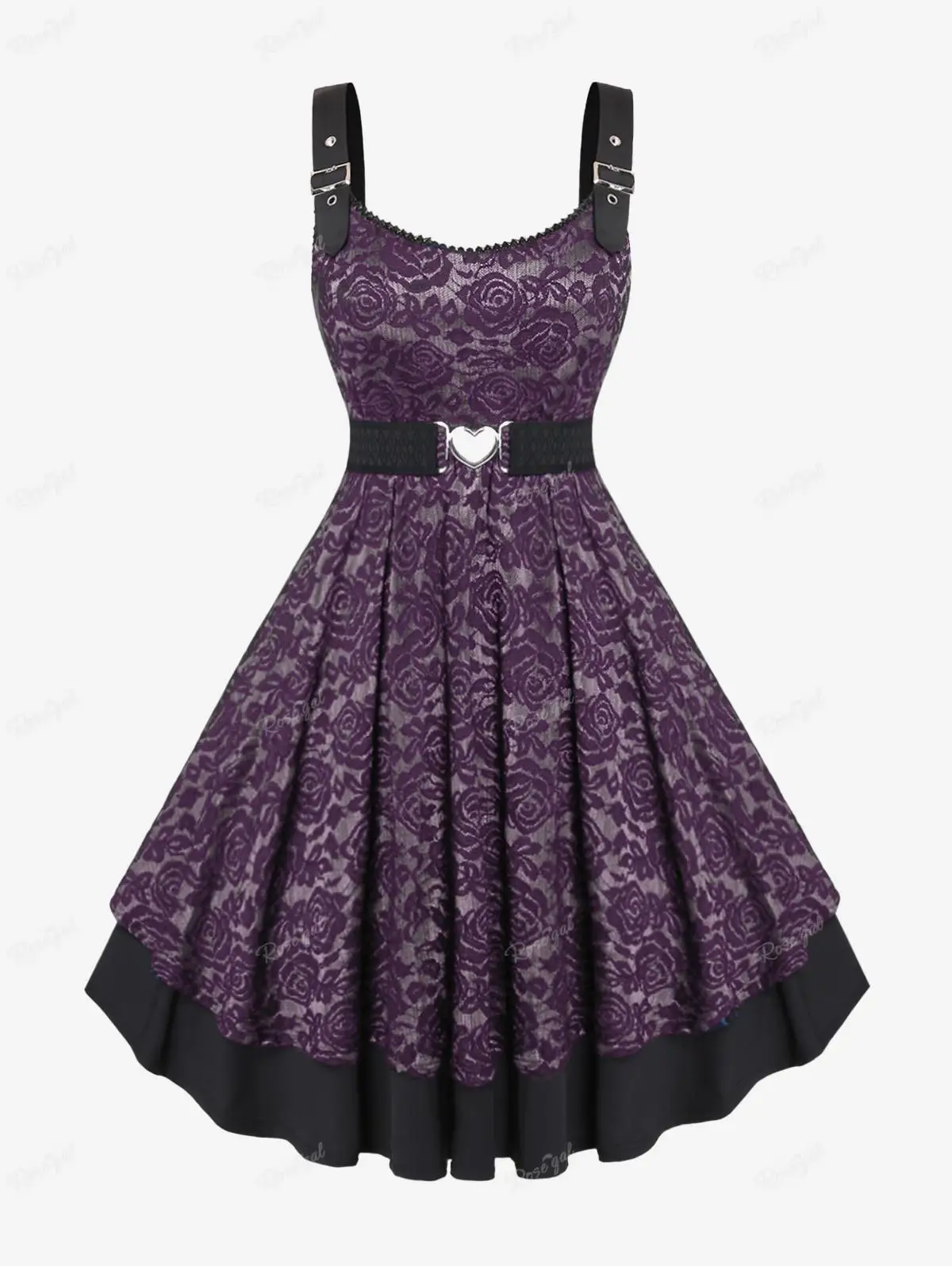 ROSEGAL Plus Size 1950s Vintage Floral Lace Jacquard Belt Dress Women Cocktail Party Dress Sleeveless Fit And Flare Vestidos