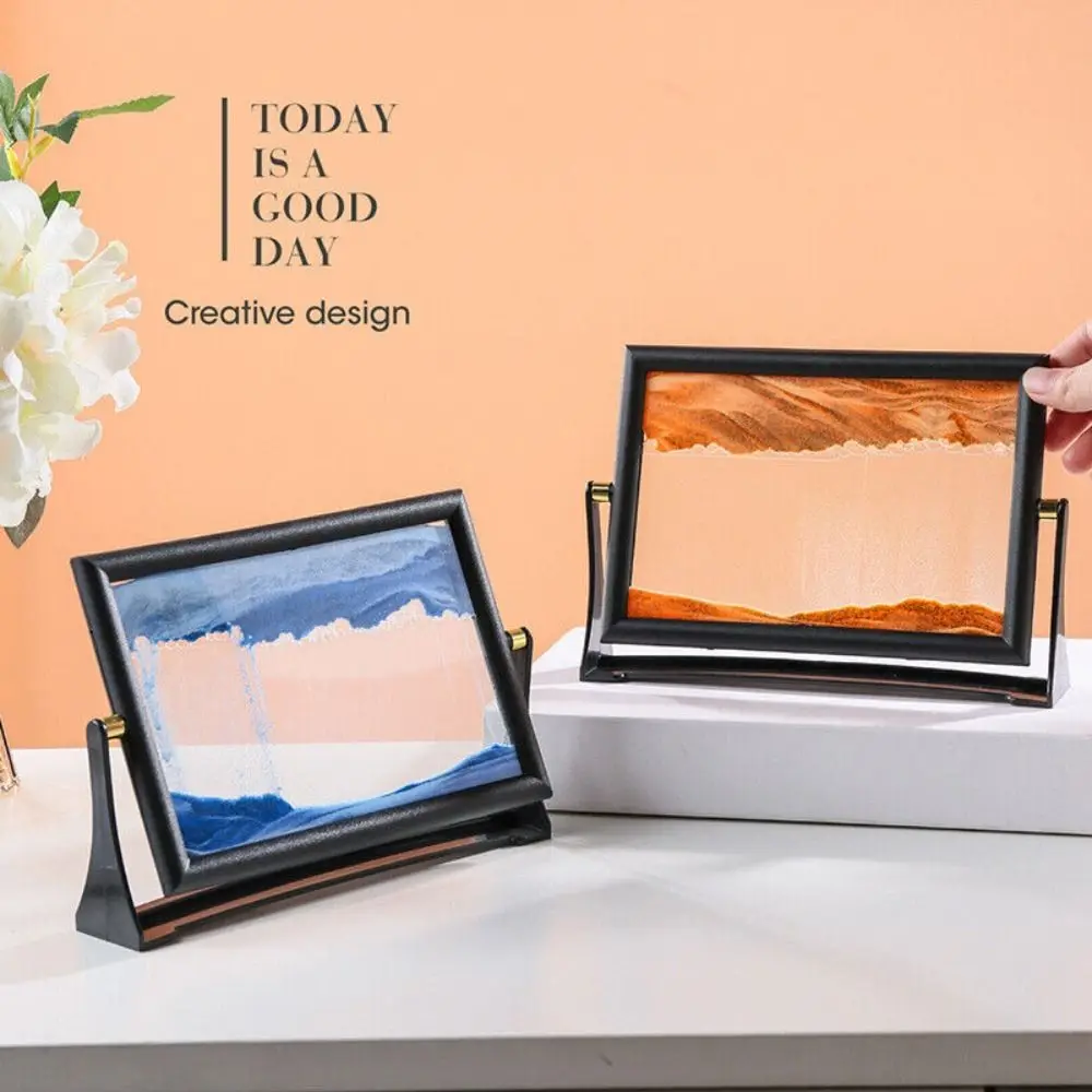 2. One of the features of this small decoration is that it can rotate. By rotating the entire glass jar, different patterns and scenes formed by the flowing sand inside the jar can be appreciated. This dynamic visual experience gives a relaxing and soothing feeling while adding an artistic atmosphere to the room.