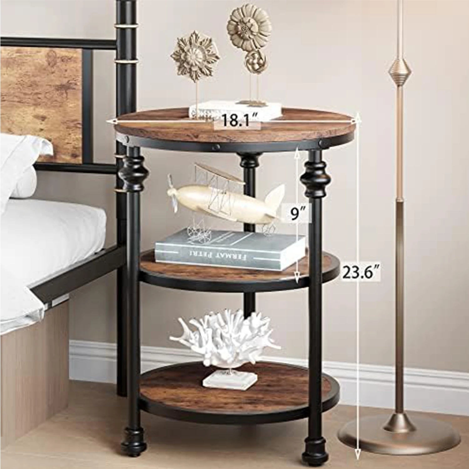 For Small Spaces: Standing at 18.1 in D x 18.1 in W x 23.6 in H. The side table takes up little floor space and provides 3 layers of storage space. As an round coffee table, end tables living room, side tables bedroom, narrow nightstand, couch side table