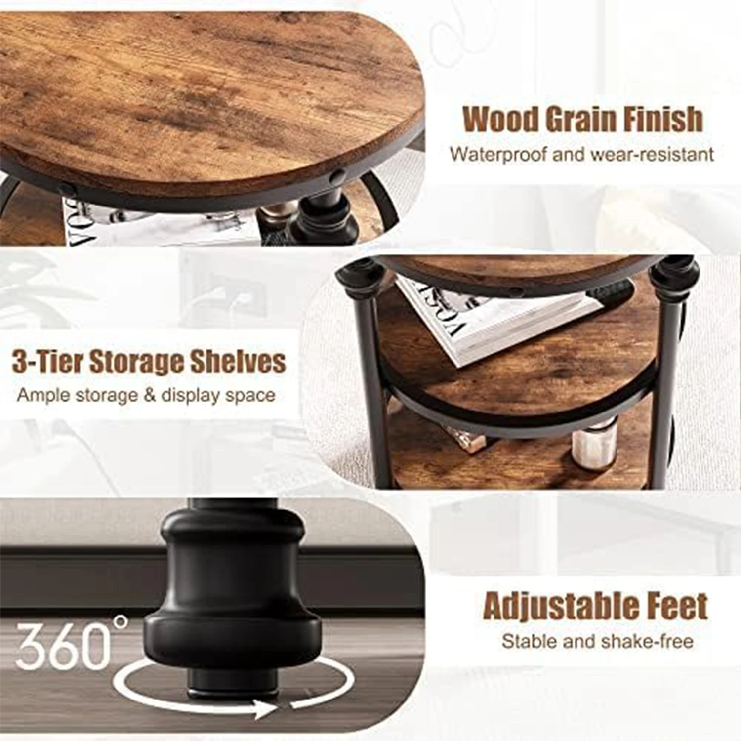 Safety-focused Design: This round end table includes a waterproof, scratch-resistant 3-tier storage shelf. Its rounded edges enhance safety, while adjustable foot pads protect floors from scratches. All in all, this makes a simple and yet extraordinary side table of the extra class