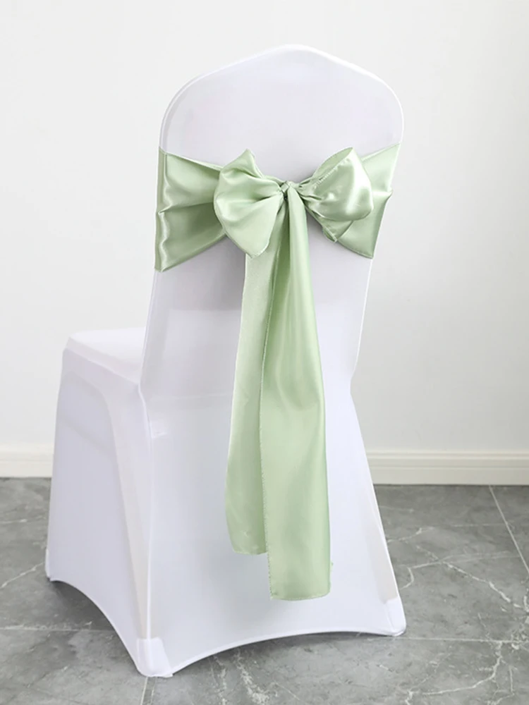 10PCS 17x275cm Satin Wedding Chair Sashes Setting Sage Green Sheer Vintage Birthday Party Festival Birthday Aisle Decor