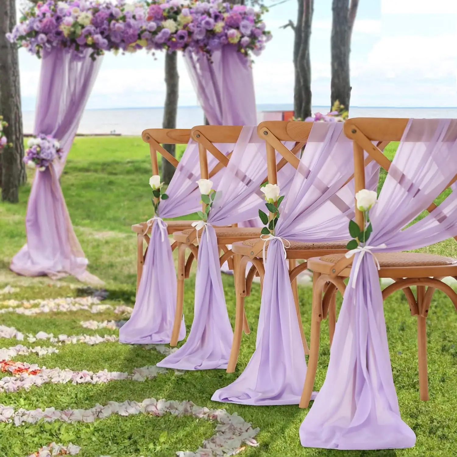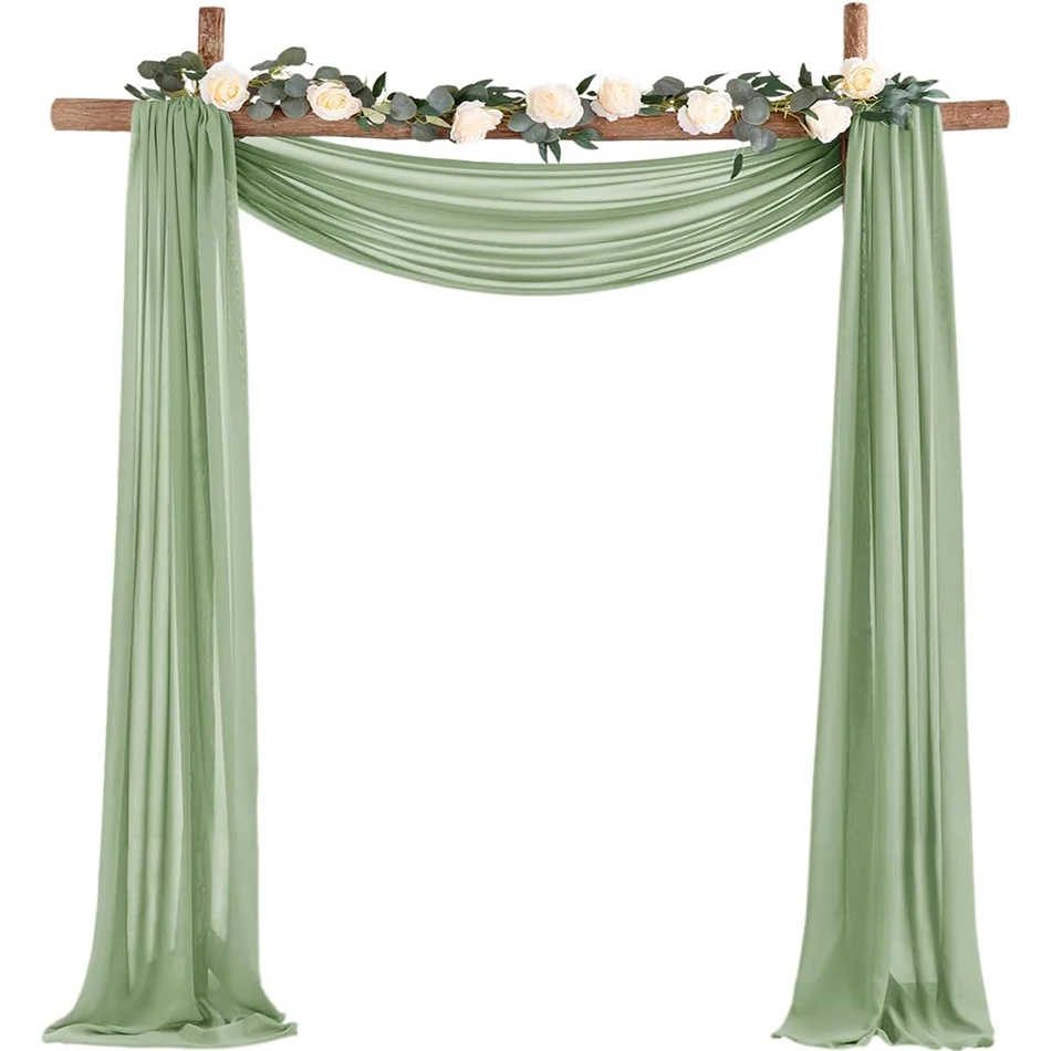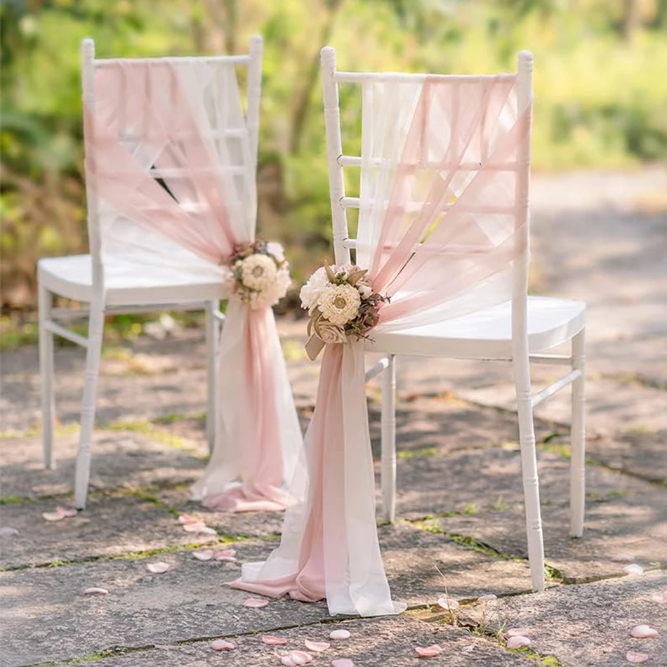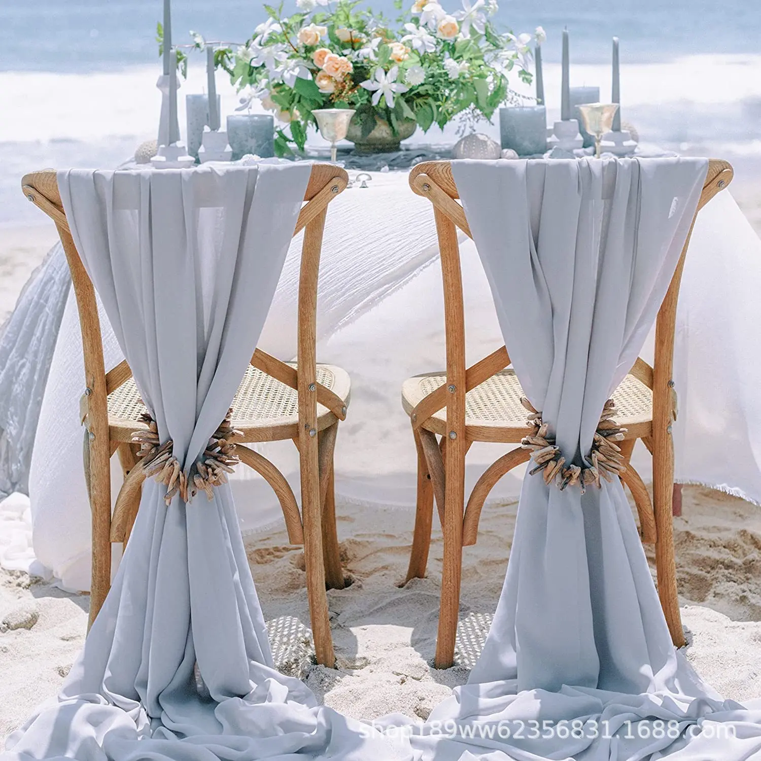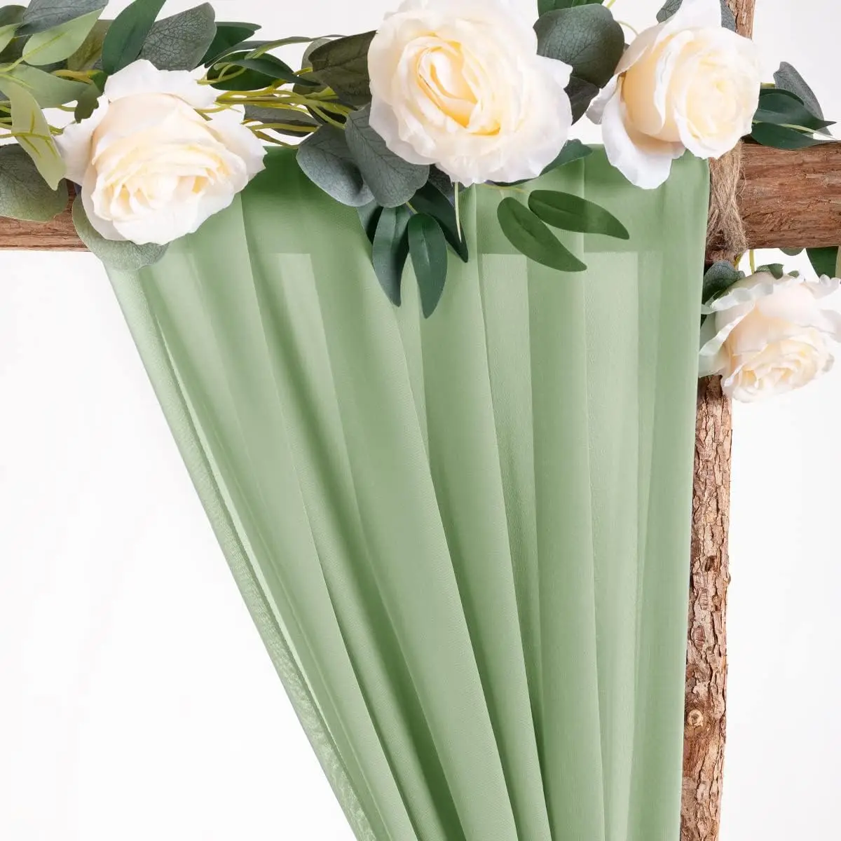 20PCS 17x250cm Sage Green Chiffon Wedding Chair Sashes Setting Gauze Sheer Vintage Birthday Party Festival Wedding Aisle Decor