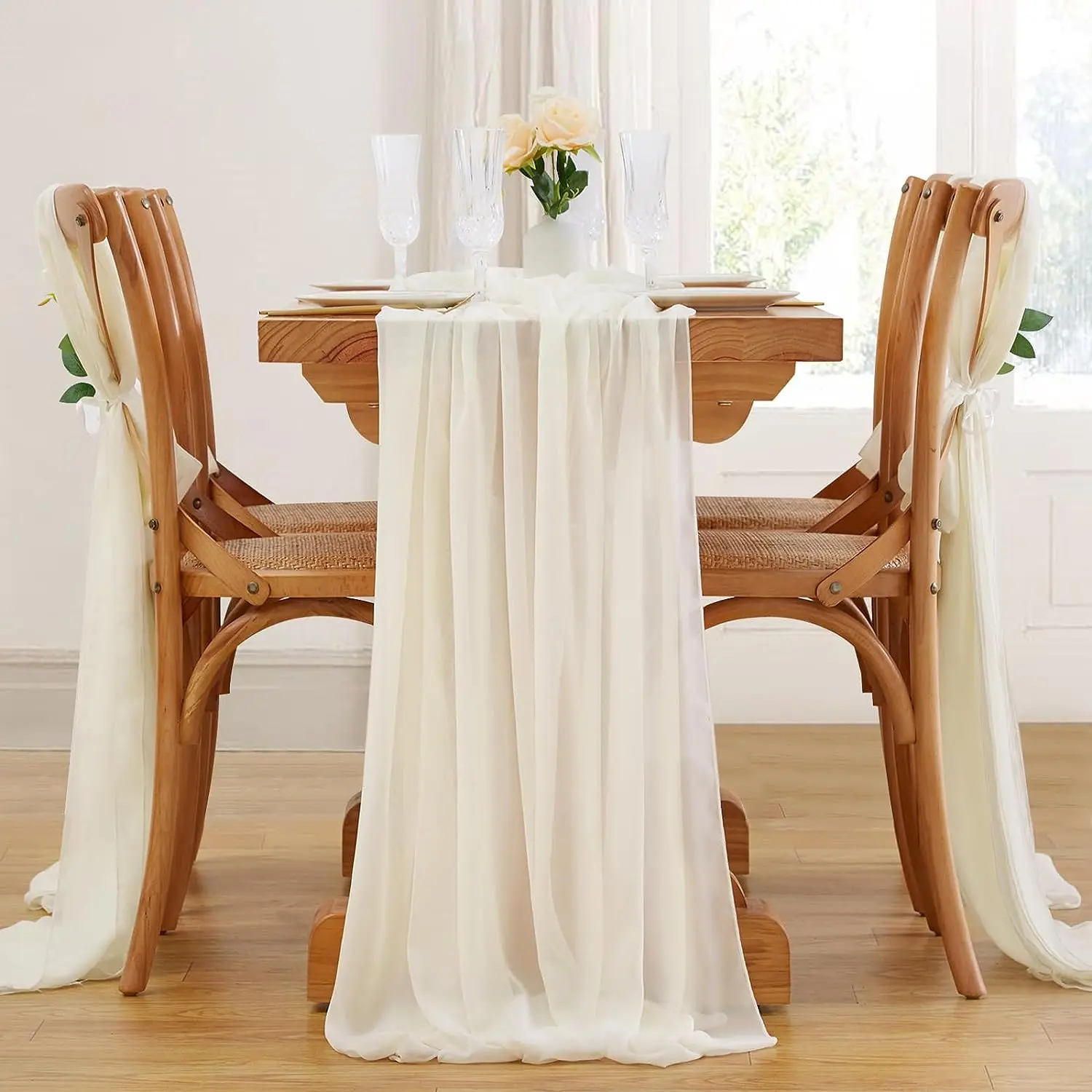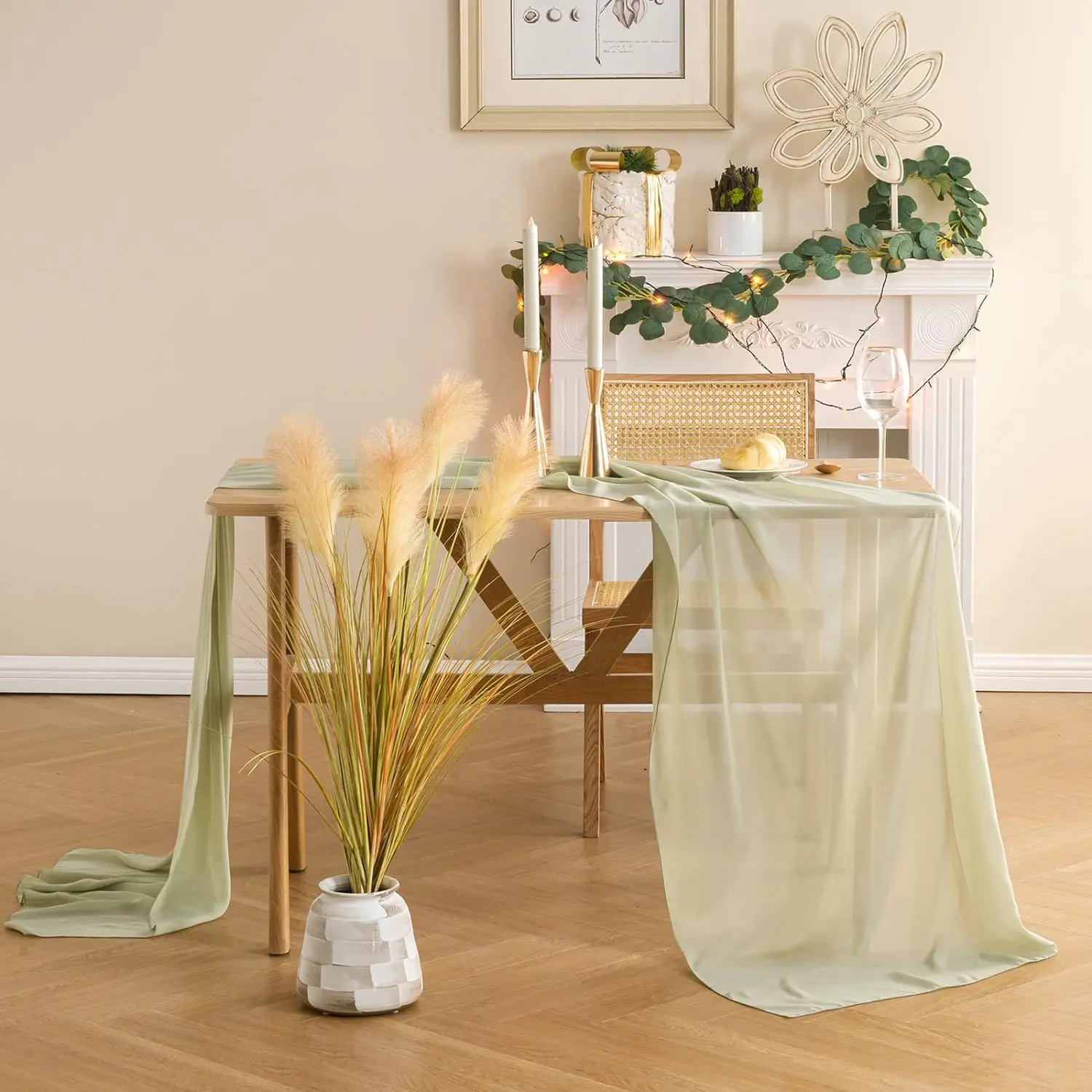 Sage Green Chiffon Wedding Table Runner Table Setting Gauze Sheer Vintage Dining Birthday Party FestivalCake Table Decor