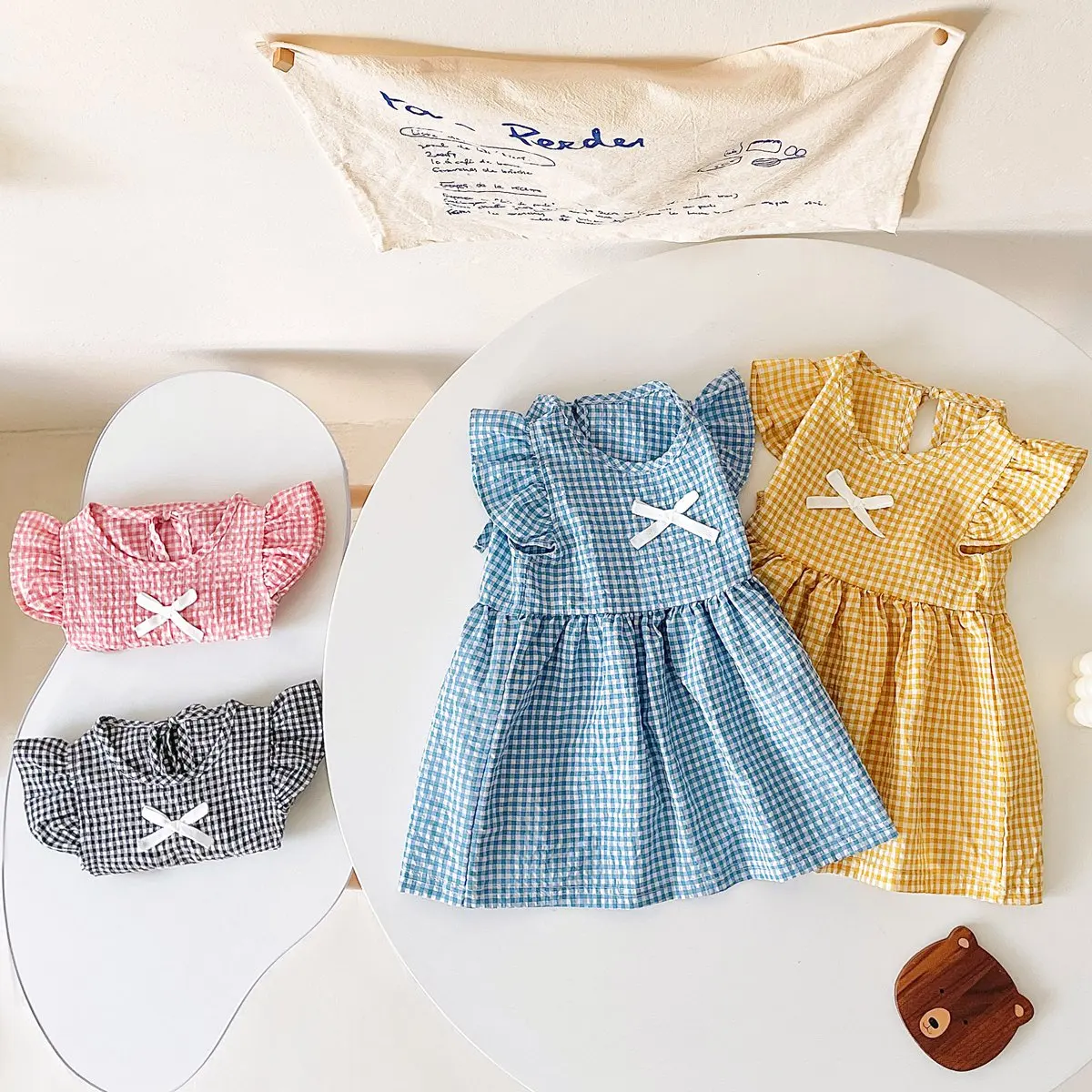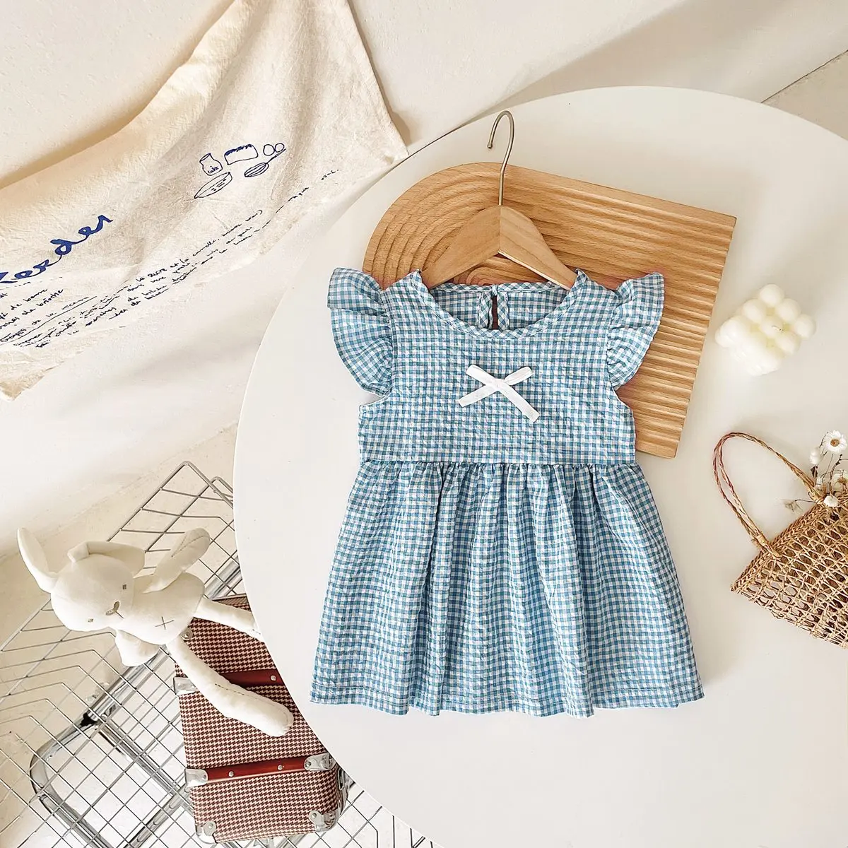 Sanlutoz Adorable Summer Baby Girls Dress Pure Cotton Korean Style Princess Kids Dress Plaid
