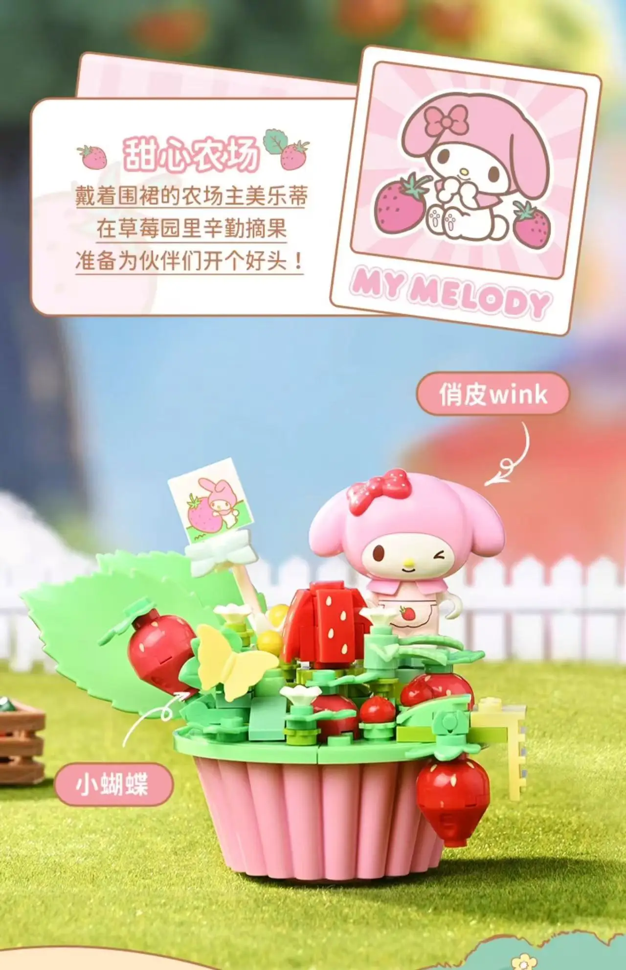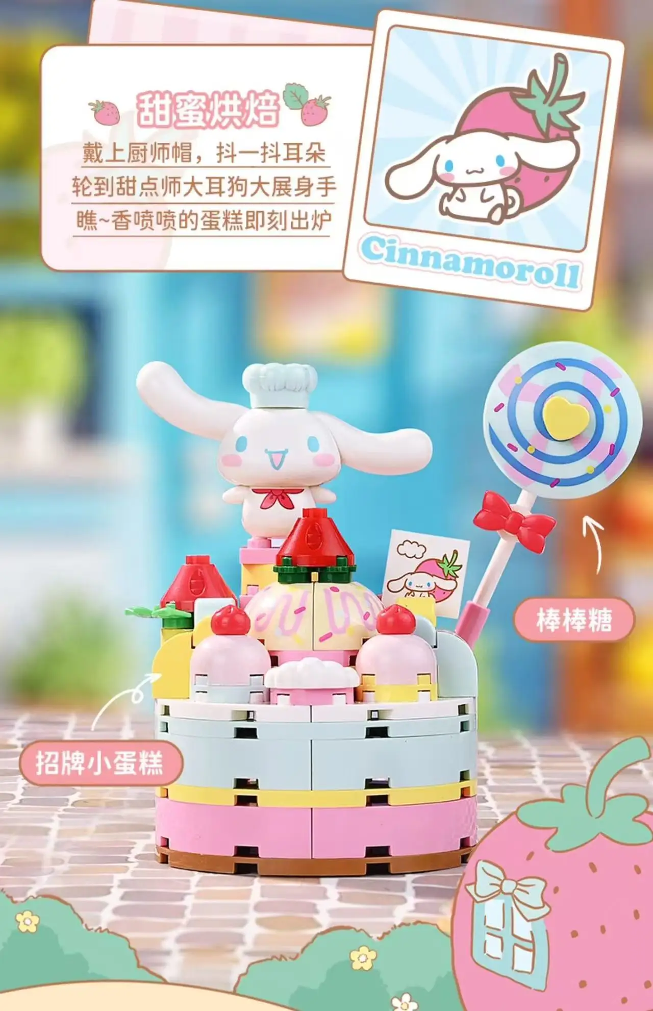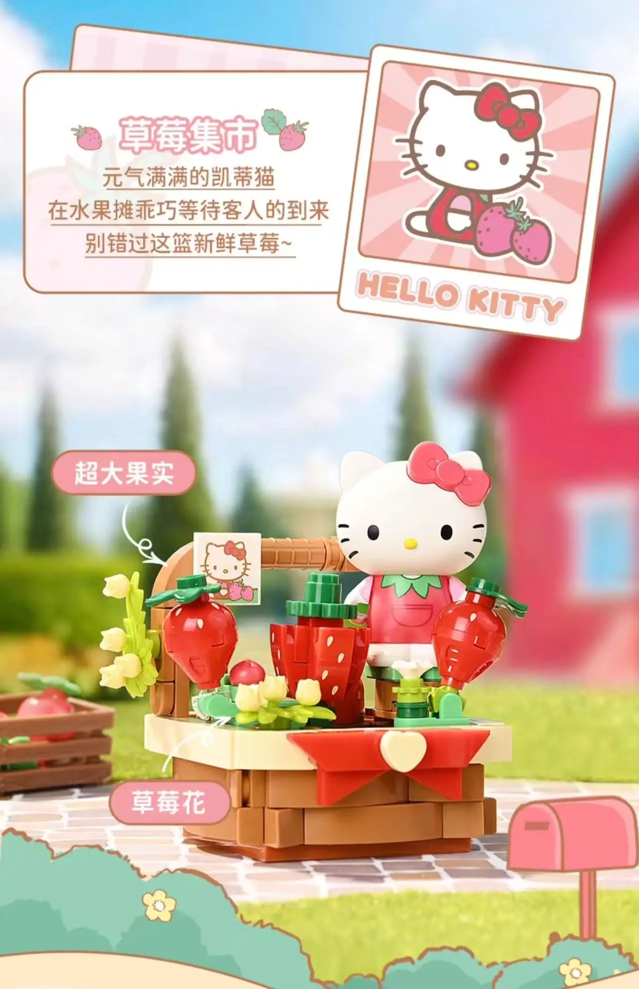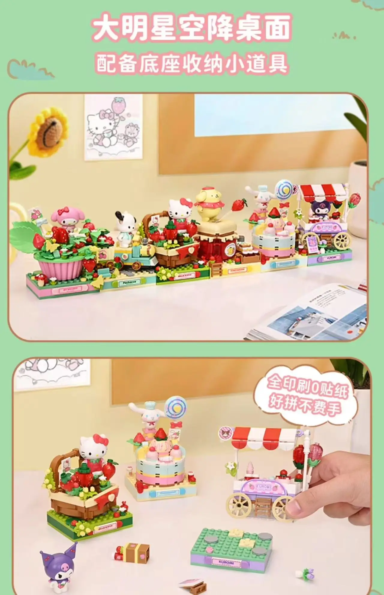 Sanrio Building Block Toys Hello Kitty Melody Kuromi Cartoon Anime Figure Model Strawberry Series Home Decoration Ornaments Toys