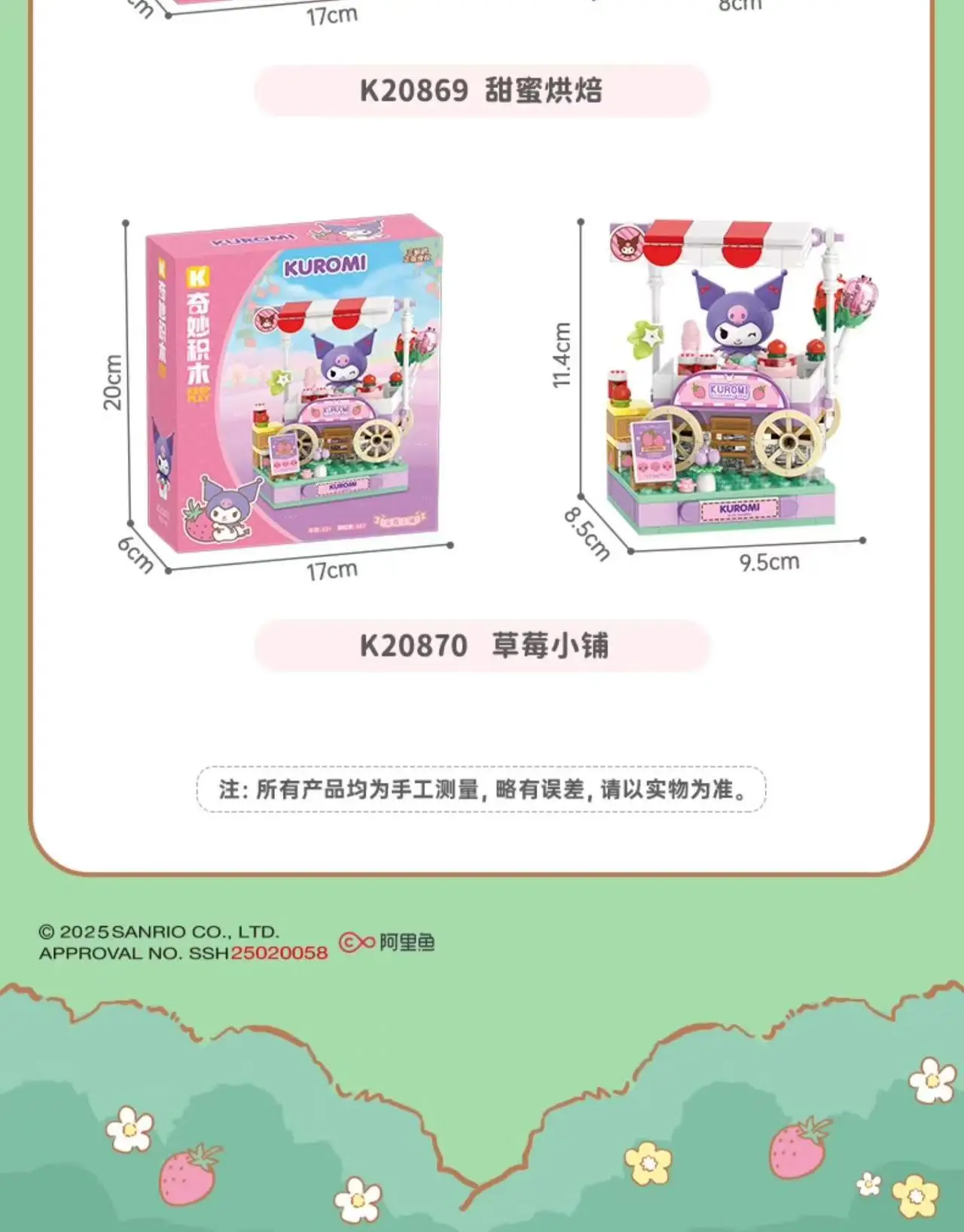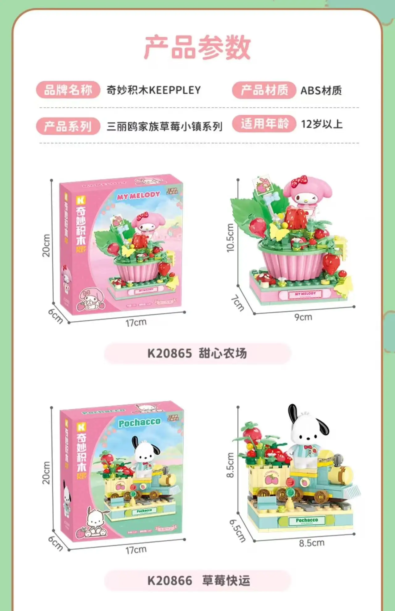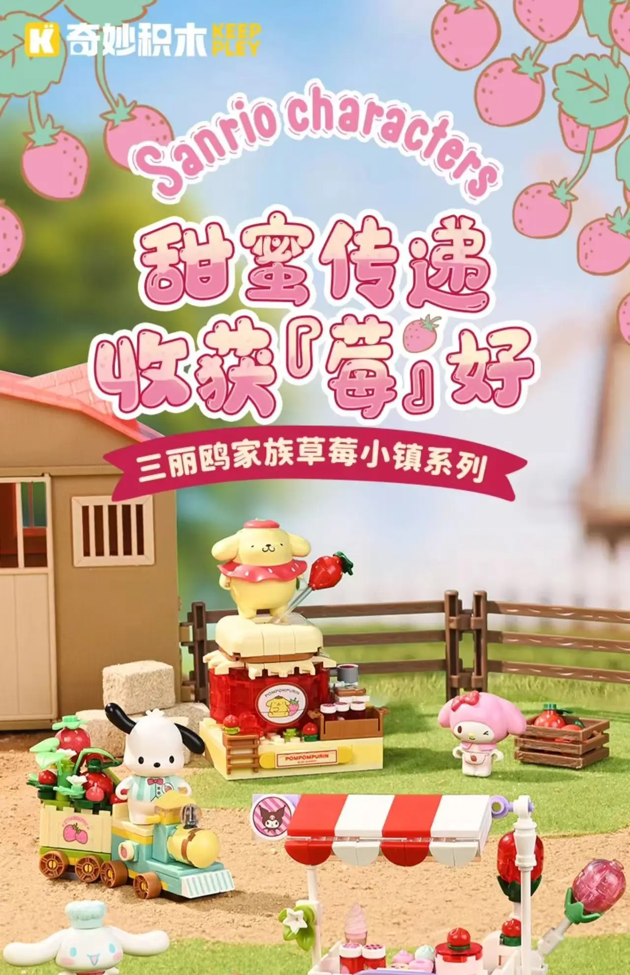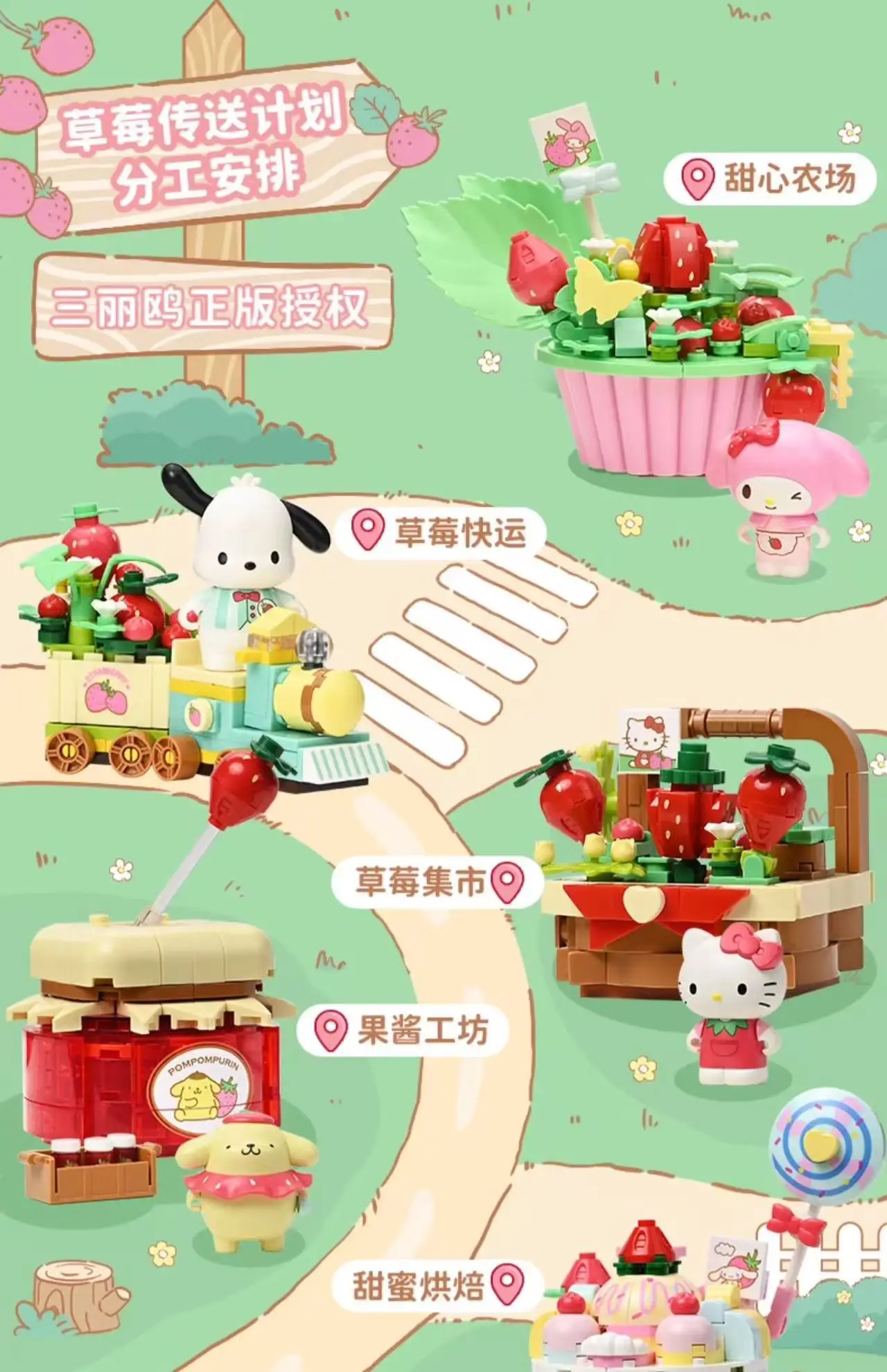 Sanrio Building Block Toys Hello Kitty Melody Kuromi Cartoon Anime Figure Model Strawberry Series Home Decoration Ornaments Toys