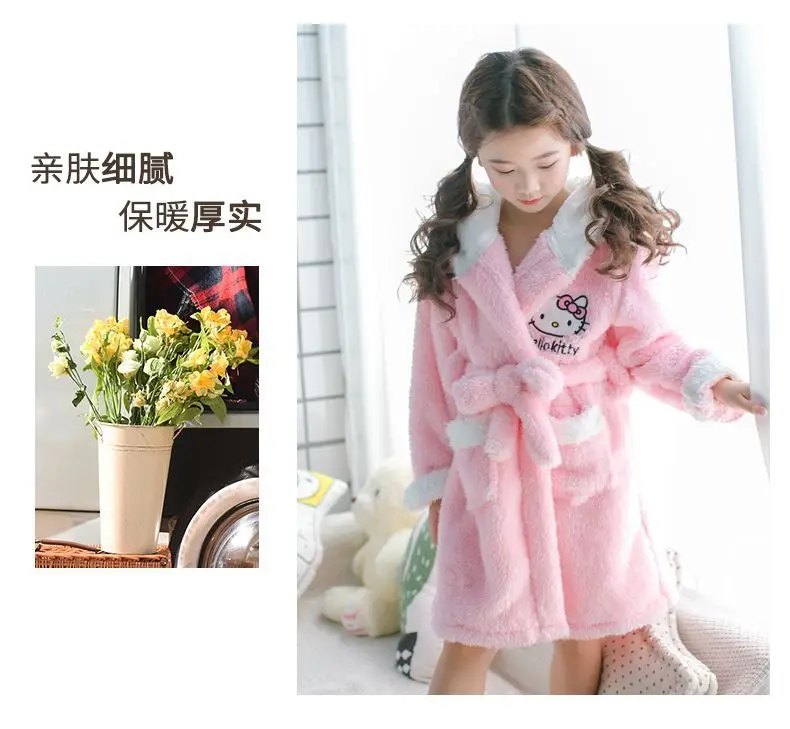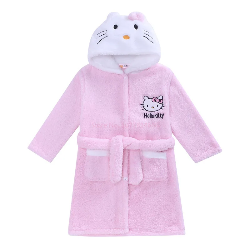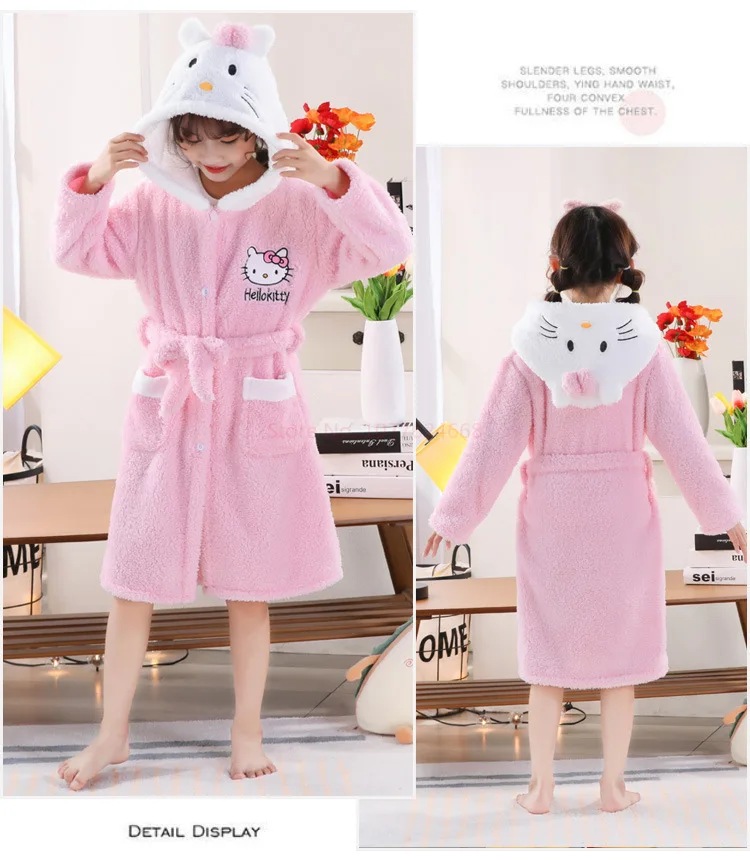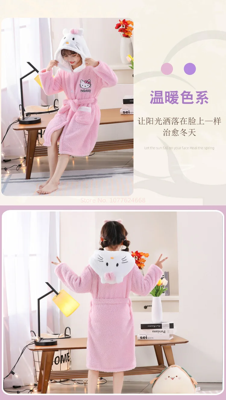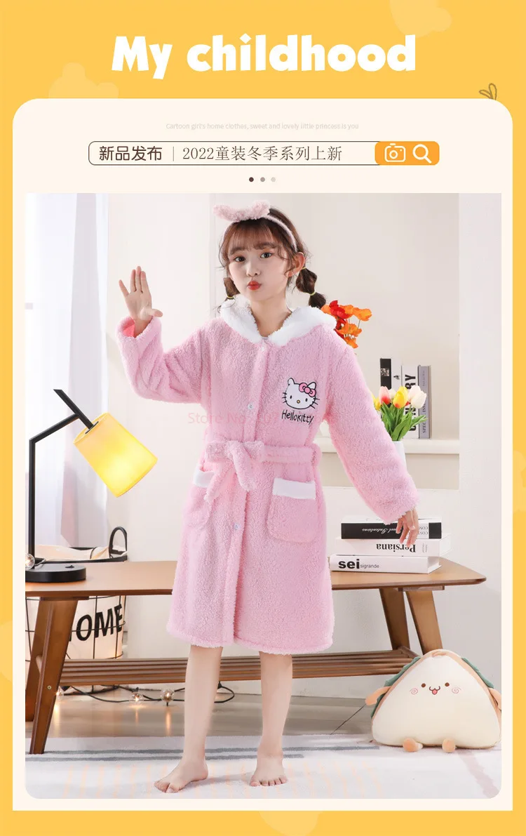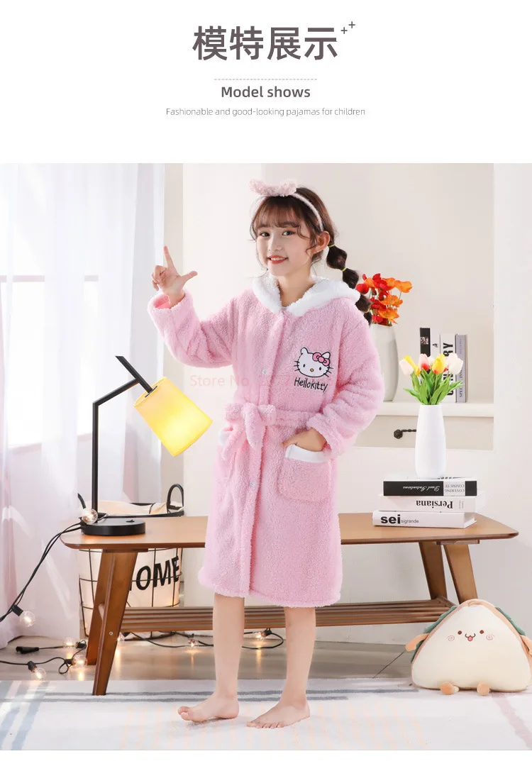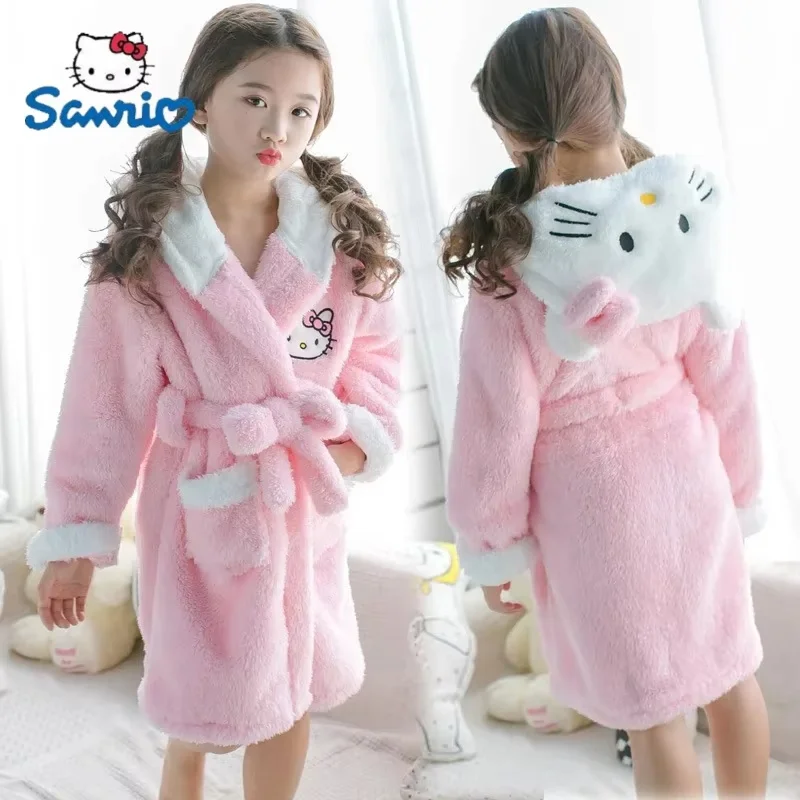 Sanrios Kawaii Hello Kitty Pajamas Coral Velvet Children Girls Heart Cartoon Anime Sleeping Robe Hooded Loungewear Cute Gifts