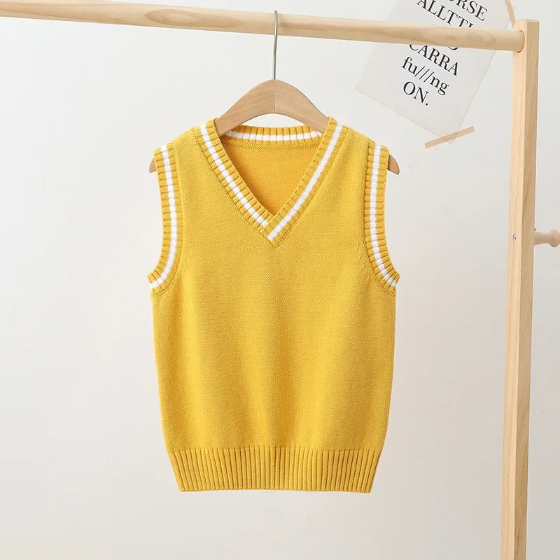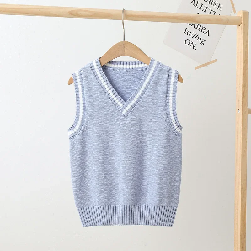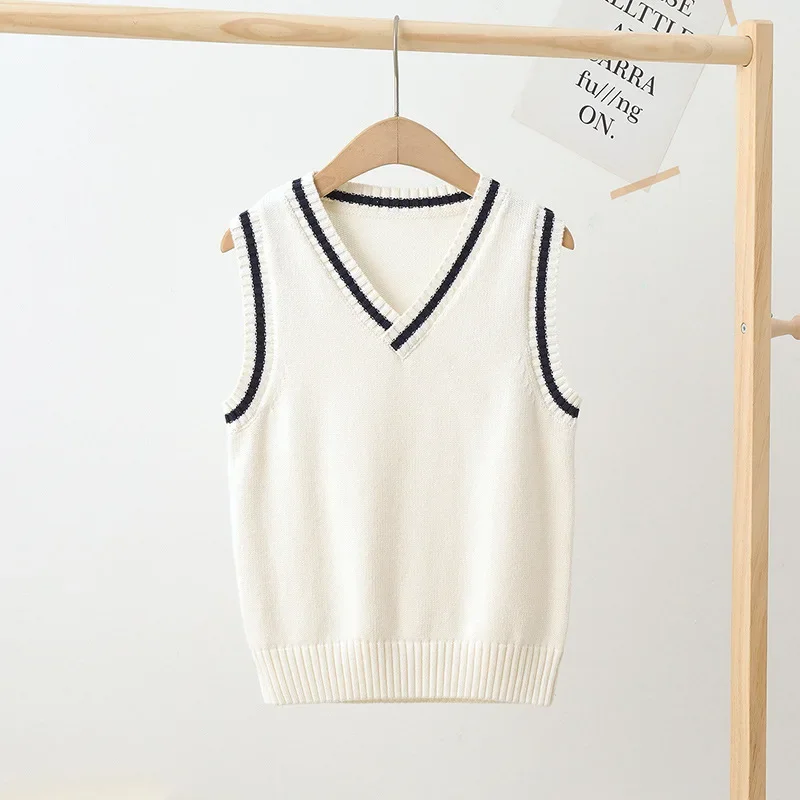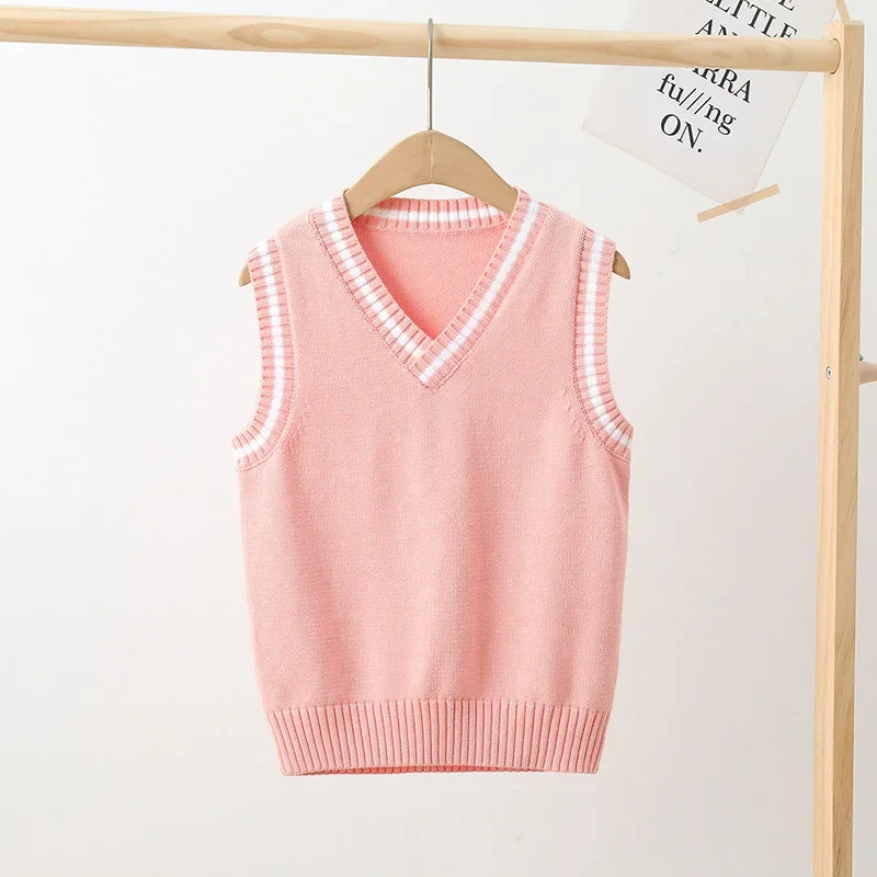 School Kids Knitted Vest Preppy Style Casual All-match Outerwear Waistcoats for Girls Spring Autumn Children Sweater 4-15 Years