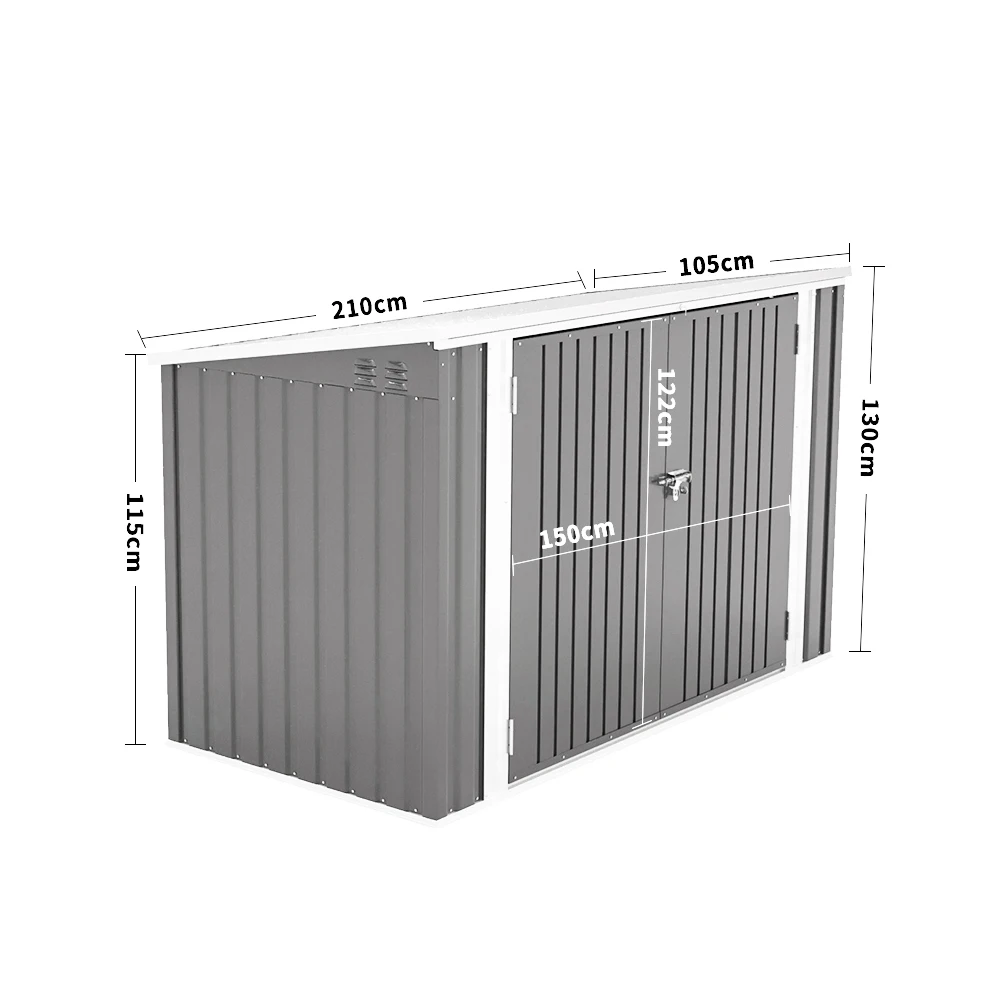 This Living And Home Bike Shed is a great solution for storing items and bikes outdoors, perfect for placing anywhere in the garden or patio.The large 7 x 3ft capacity is perfect for storing bikes, but can also be used for storing things like wheelie bins or other garden tools and furniture, with internal dividers for additional storage space and storage of smaller items! The bike room is made of sturdy steel construction that is weatherproof and has side vents to keep it ventilated and dry. It opens from the top and front, and the double door design makes accessing items easier. The roof is sloped to prevent water from pooling when it rains. The doors of the carport can be locked to do all you can to keep your belongings safe.