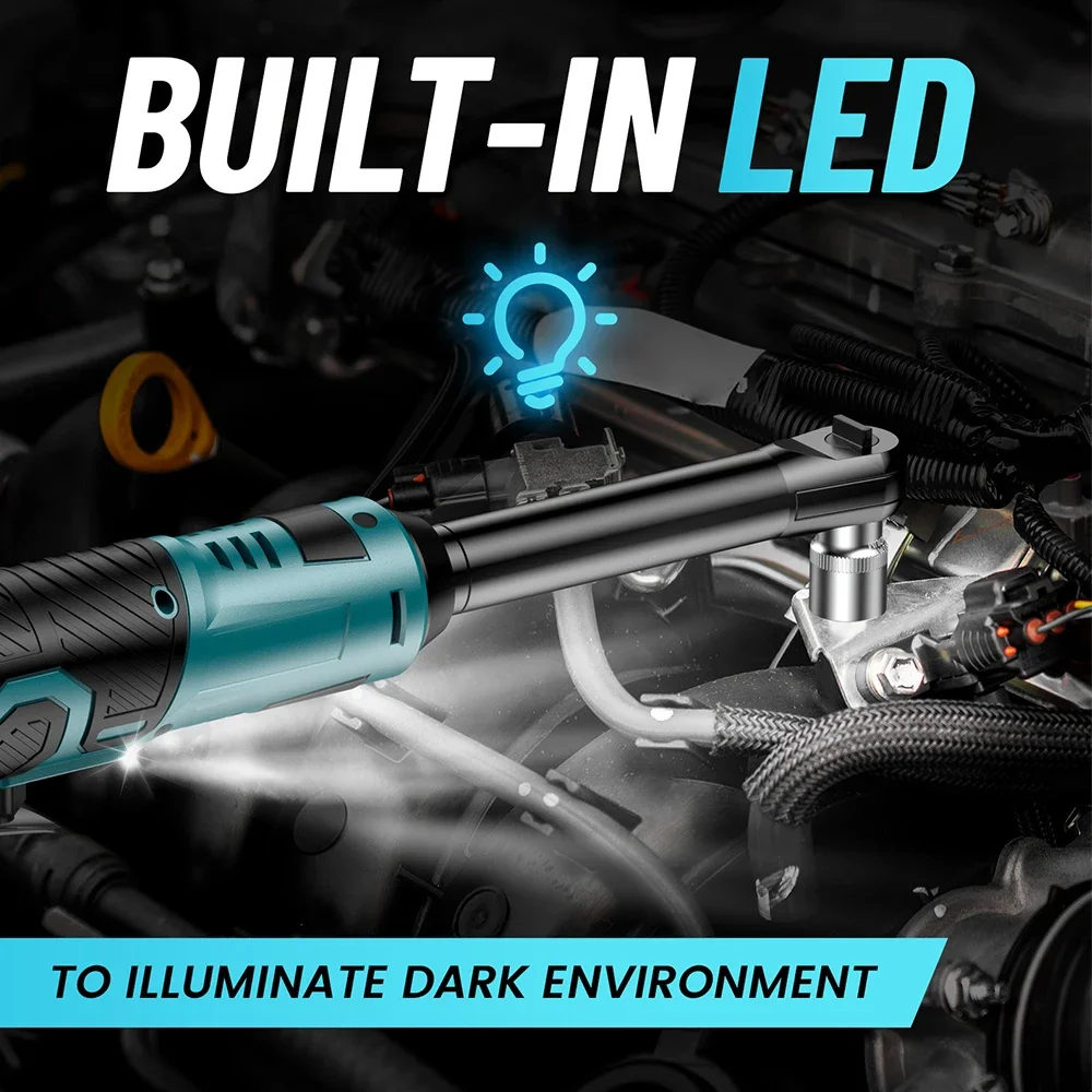 Built-in LED & Power Indicator: Work confidently in dark areas with the integrated LED light on this 3/8 inch ratchet. The smart power indicator shows remaining battery life at a glance, ensuring you'll neve