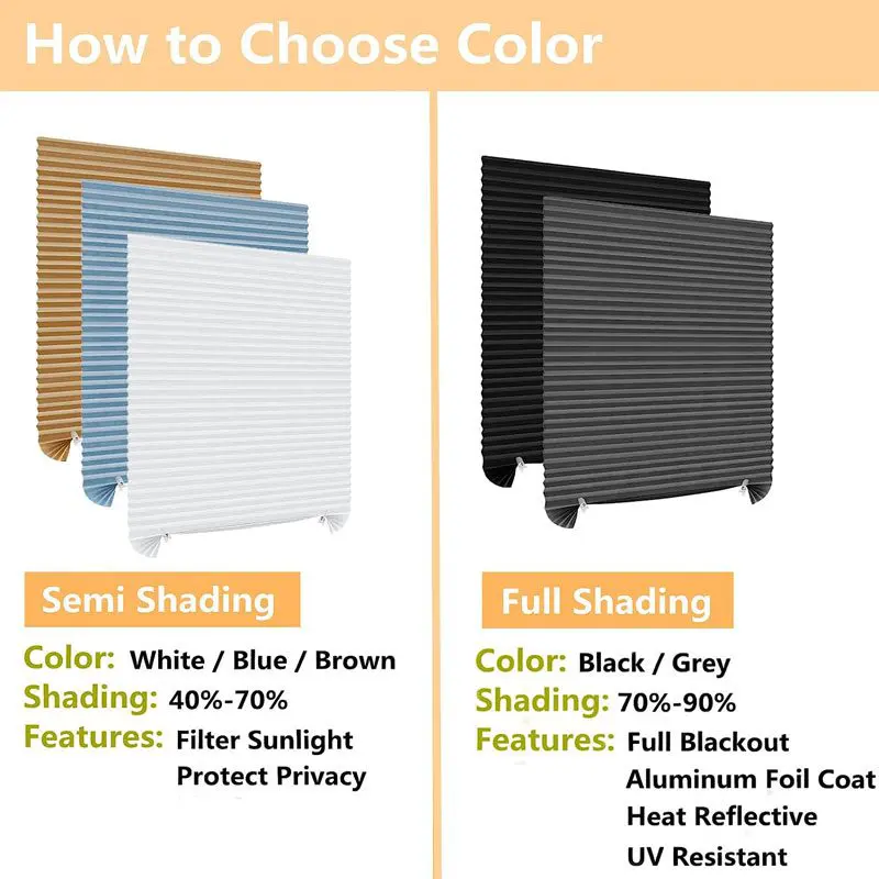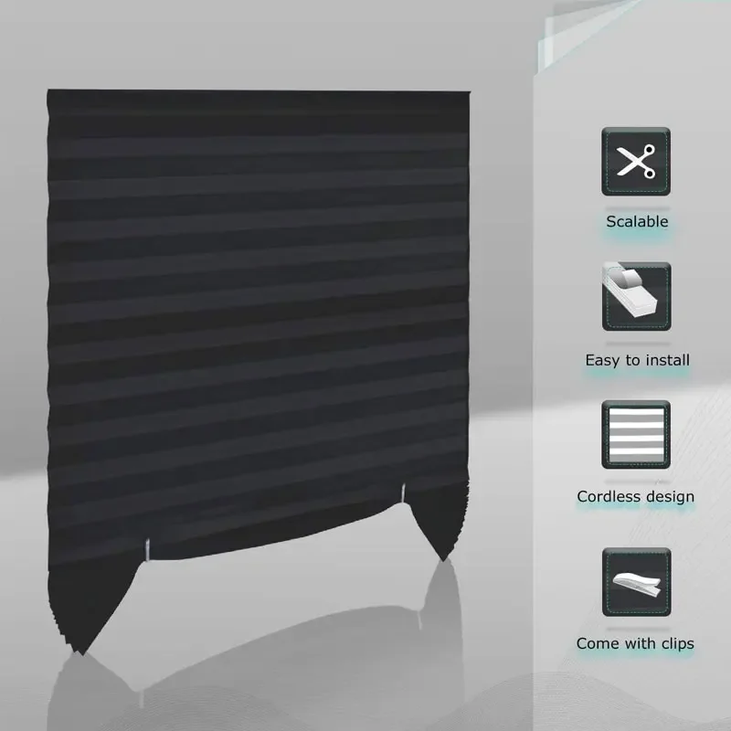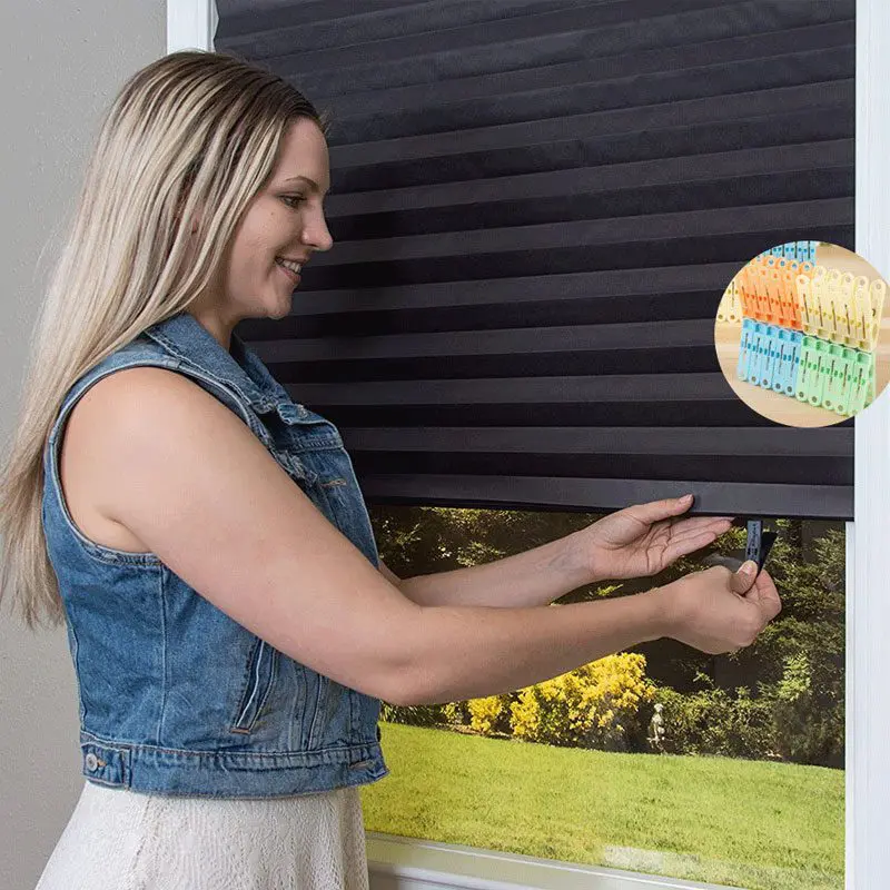 Cordless lift system with these room darkening shades makes child and pets in safe.It guarantees the safety of you and your family.Each 1 Pleated blinds give away two clips for you can easily freely control the shape of the pleated blinds and the shading of the room.
