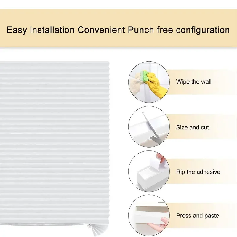 Self-adhesive Blinds Window Shades Blackout Pleated Curtains Cordless Paper Shade Folding Non-woven Fabric For Bathroom Balcony