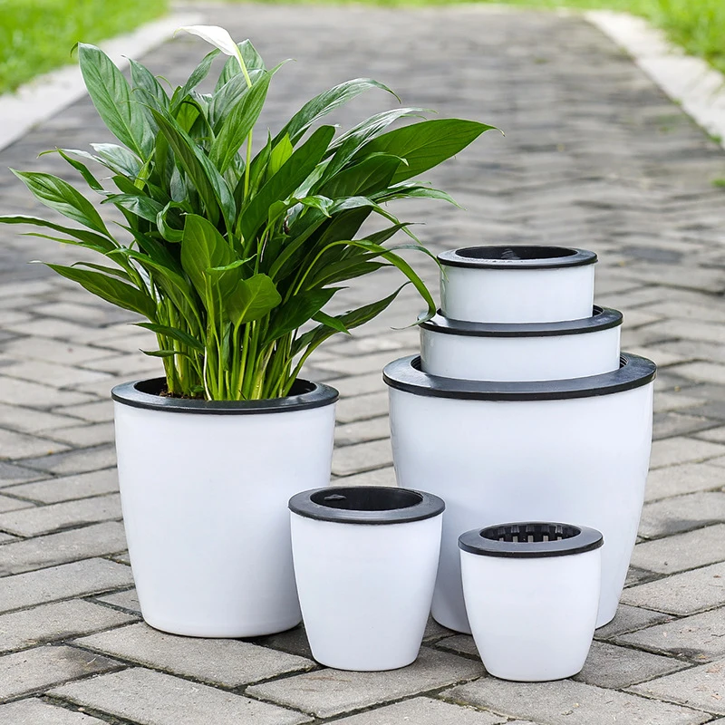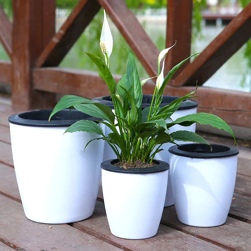 Self Watering Plastic Planter with Inner Pots White Modern Plastic Flower Planter Pots Indoor Plant Pots for Succulents Orchid