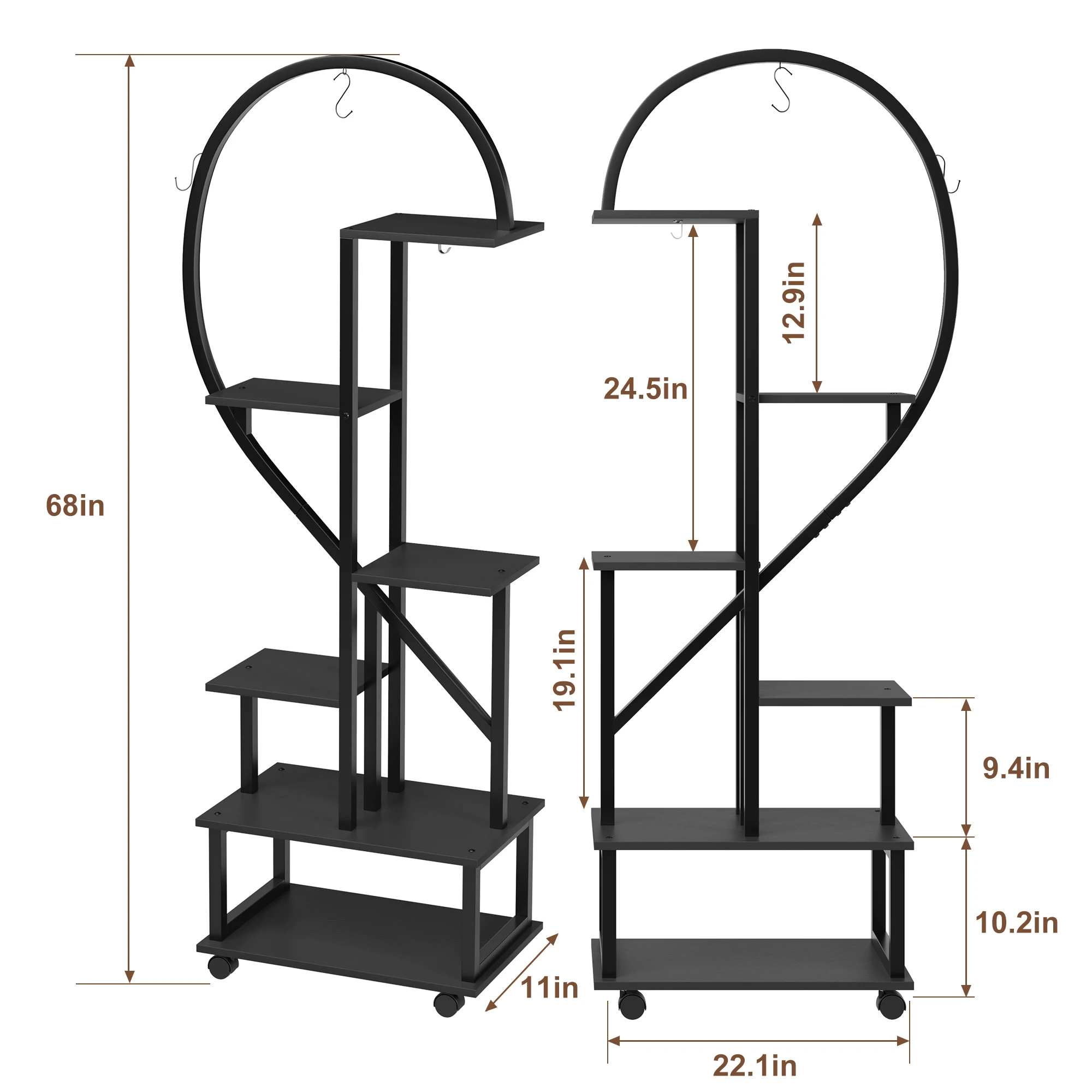 1. Distinctive Half-Heart Design: Beautify your home with this unique half-heart-shaped plant stand. Its flexible design allows you to connect or separate the two parts depending on your needs, making it a versatile addition to your living room, balcony, garden, porch, etc.