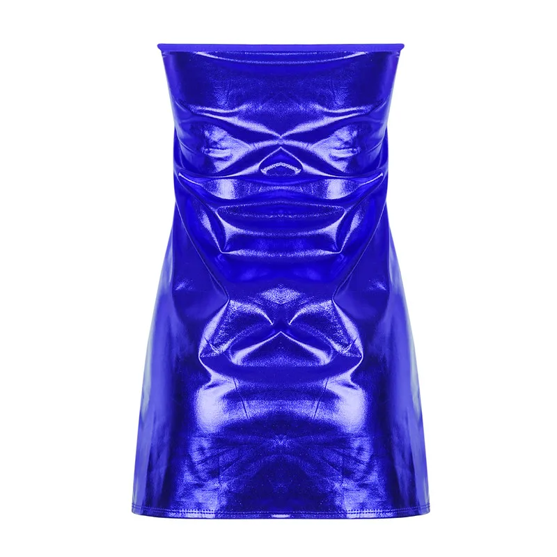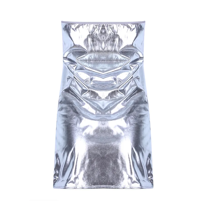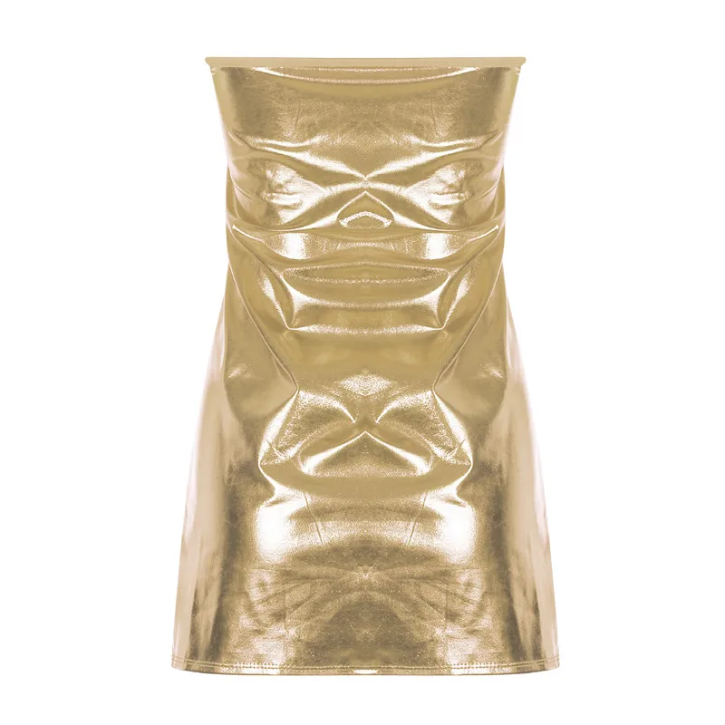 Sexy Dresses Women PU Solid Color Dress Clubwear Imitation Leather Chest Wrap Dress Slieeveless Short Skirt For Ladies