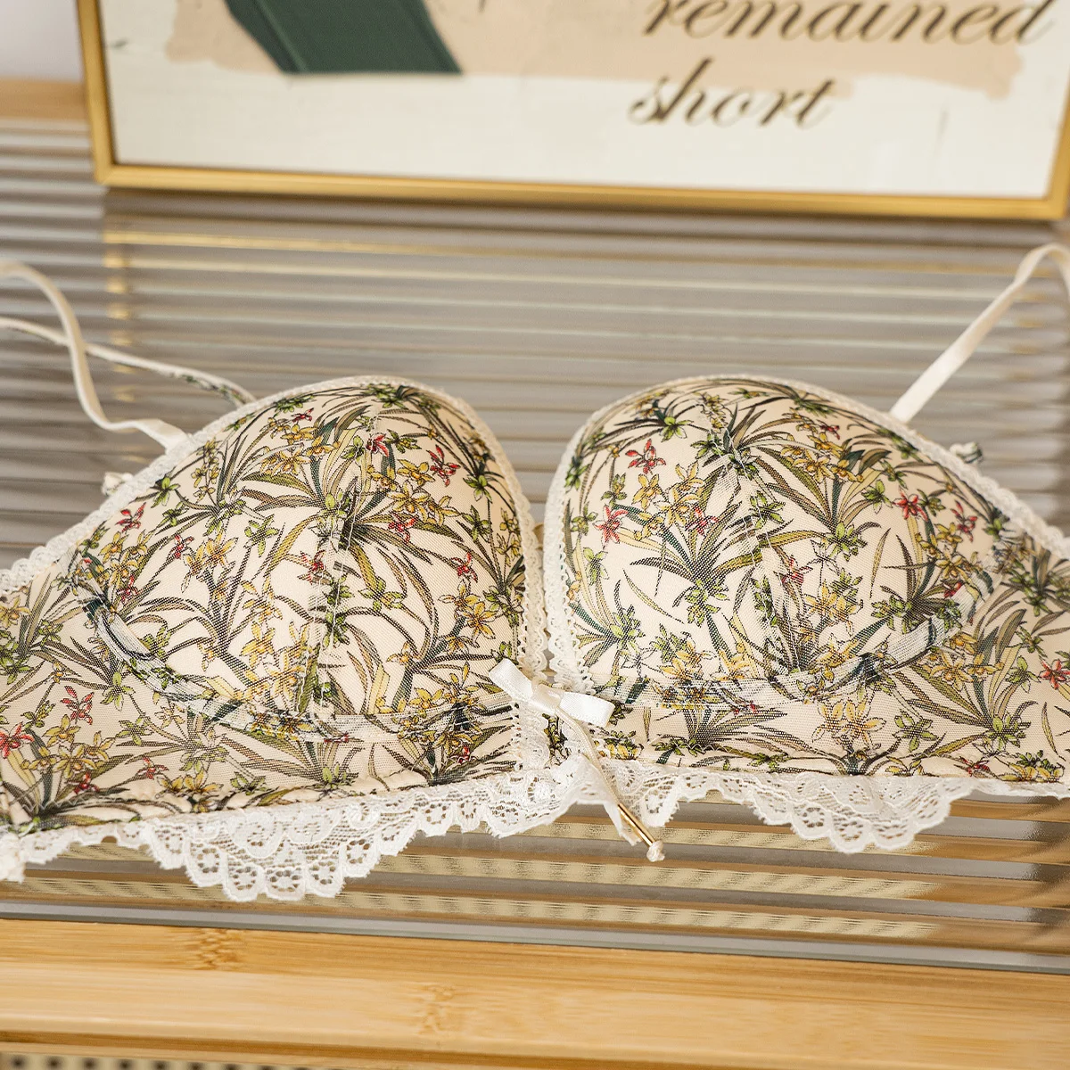 Sexy Half Cup Bra Fashion Spring/Summer Printed Small Chest Bras Lace Lingerie Underwear Bra for Women Free Shipping CW9550