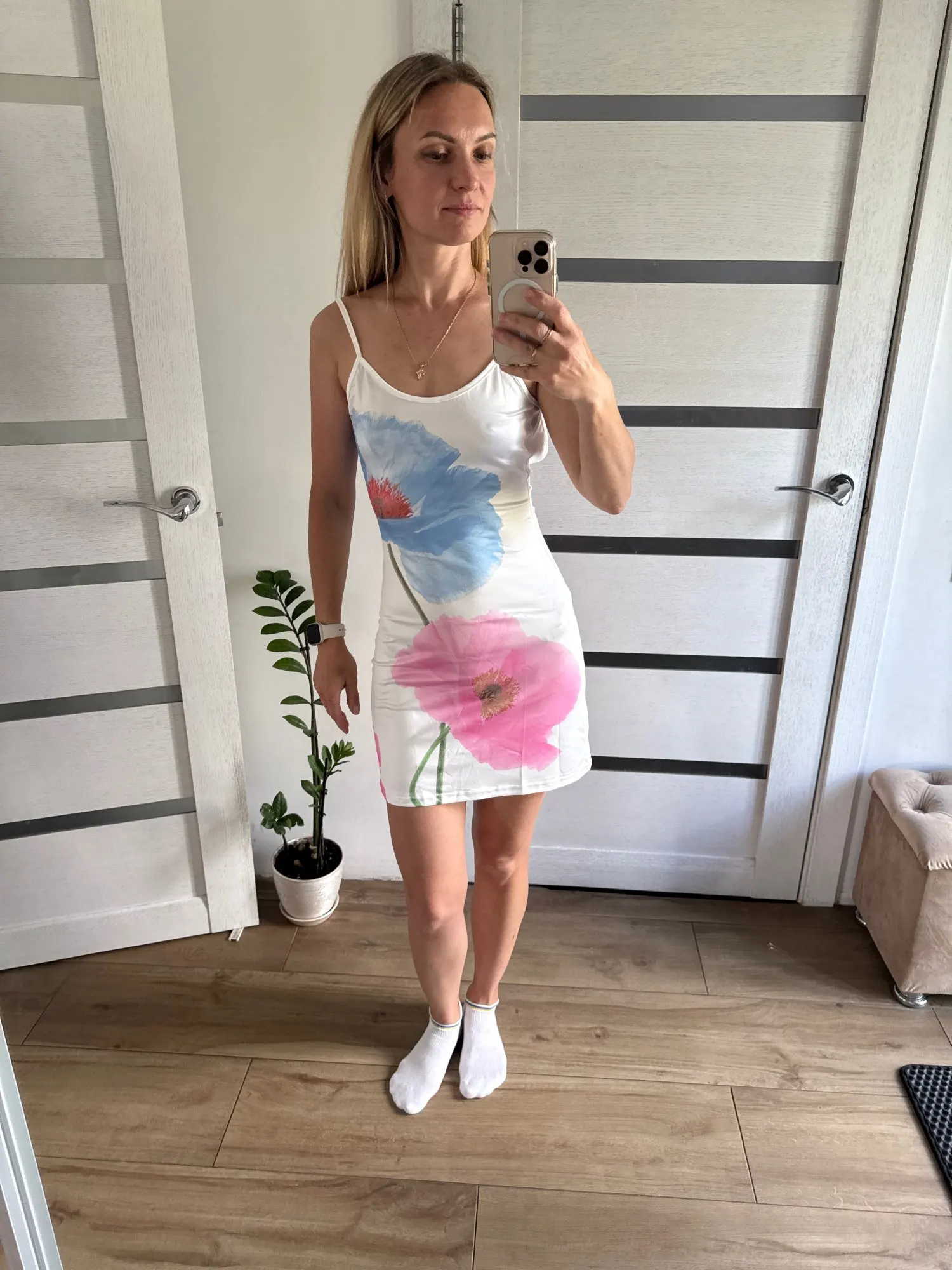5 reviews for Sexy Mini Dress Women Summer New White Fashion O-Neck Streetwear Print Sleeveless Dress Strap Backless Casual Slim Elegant Dress