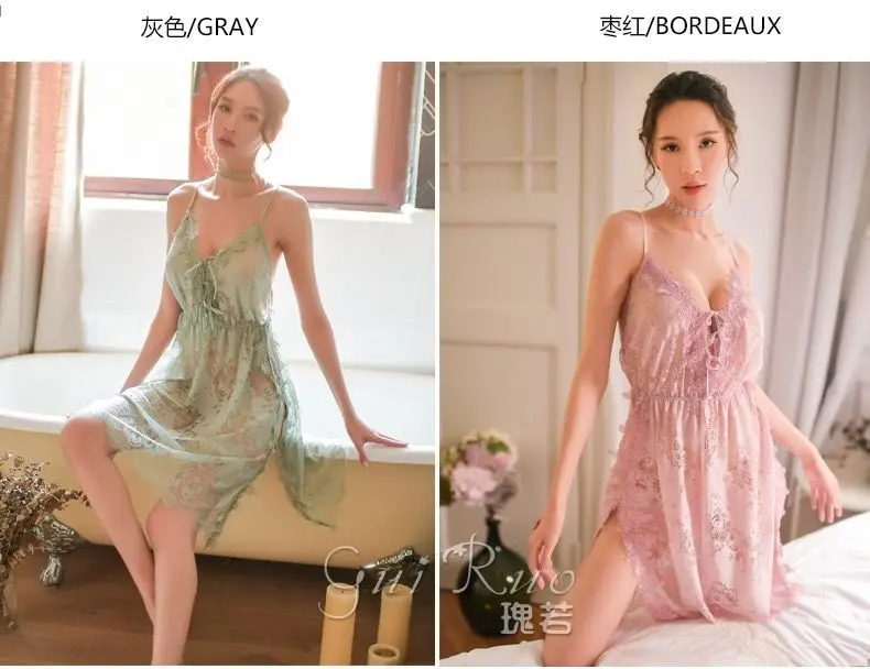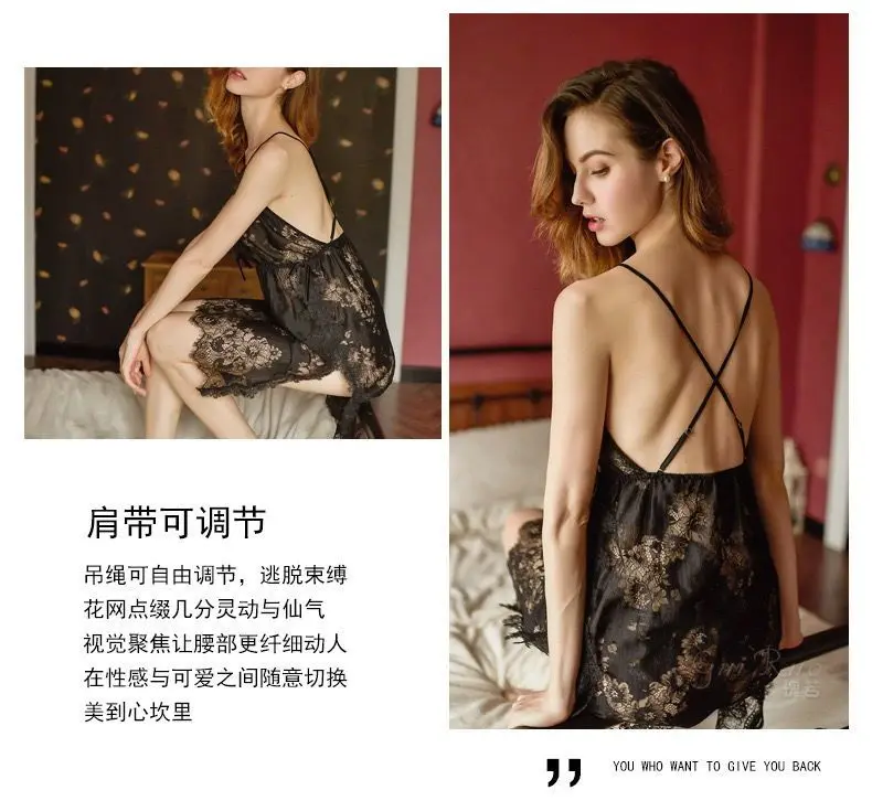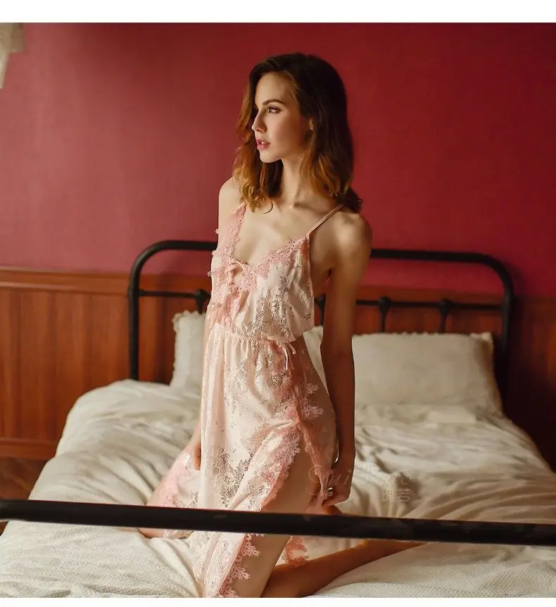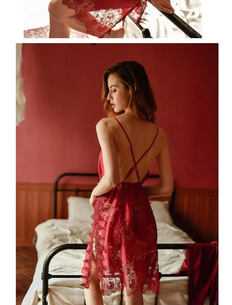 Sexy Women Nightwear Slip Dress Backless Lace Slit Pajama Slips Pajamas Skirt Summer Women’s Nightgowns Erotic Lingerie Woman
