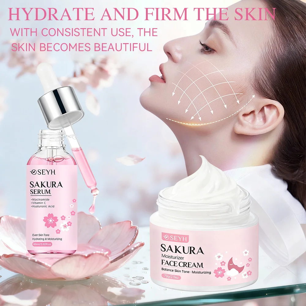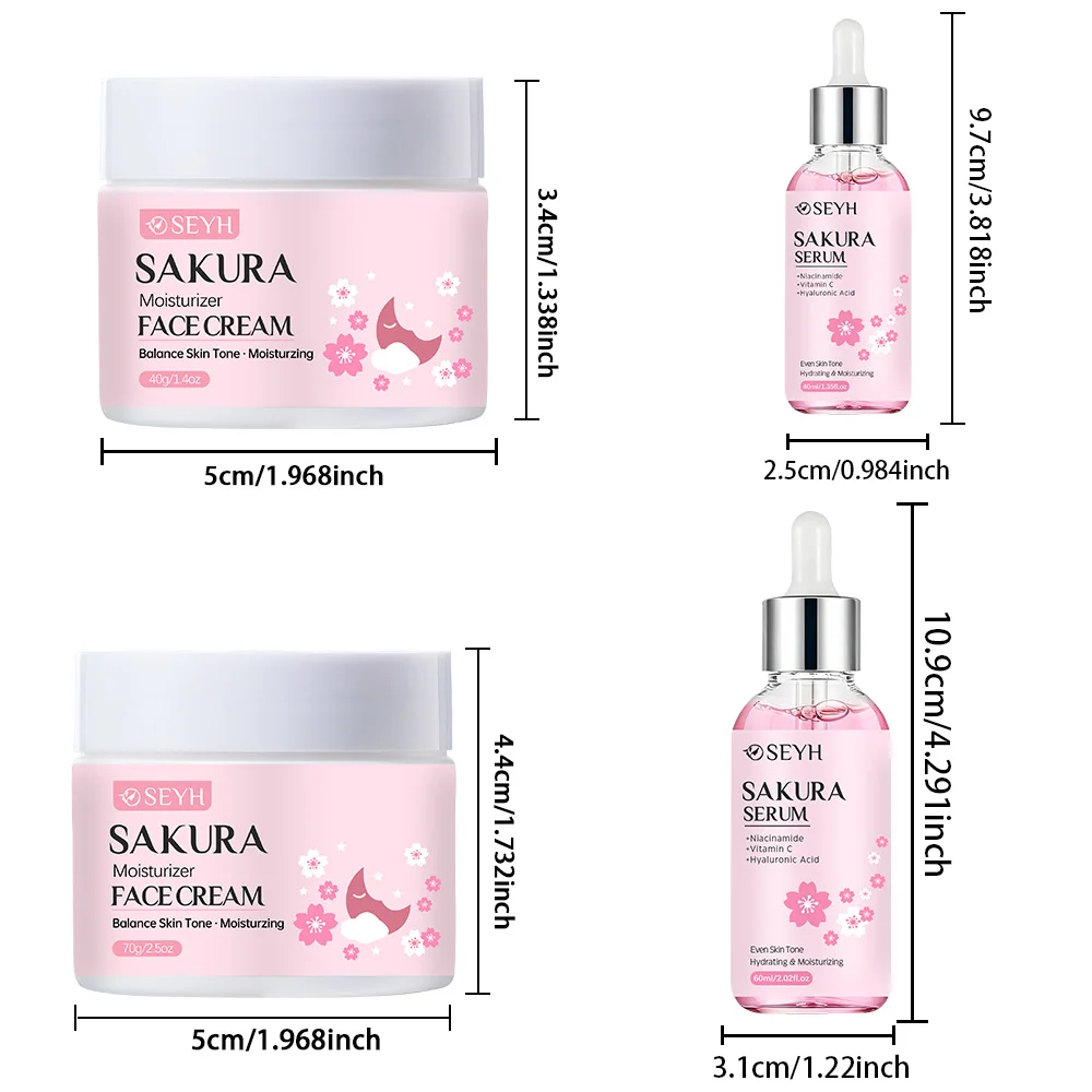 1 review for SEYH Sakura Facial Essence + Moisturizer 2pcs Set Day & Night Skincare Combo with Retinol Aloe Vera & Sakura Extracts 72H Hydrat