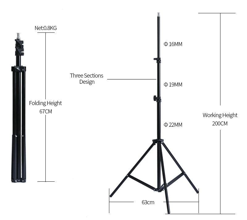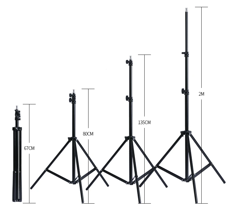 Light stand:Folded height 27inch(68cm), working height 79inch(200cm) High quality,stable and durable,easy to install and use.