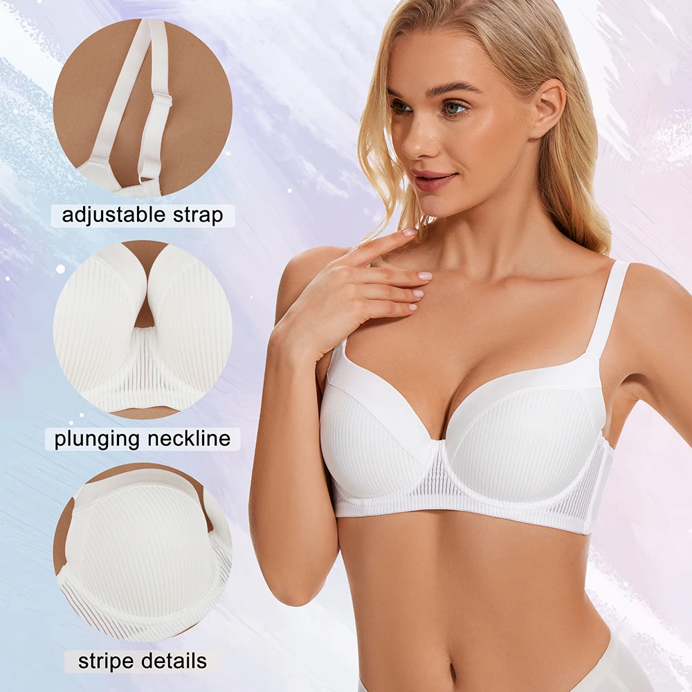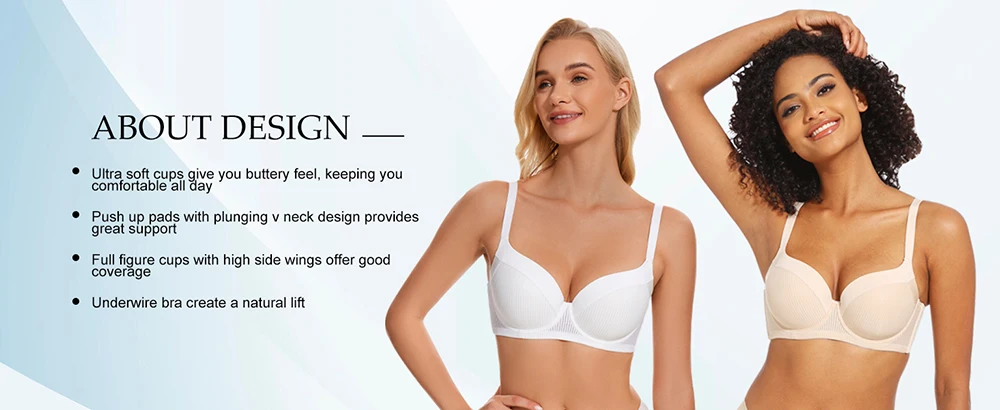 T shirt bra with deep V plunge design creates a natural looking lift and contours. Smooth push up cups are more suitable for tees and low cut clothes