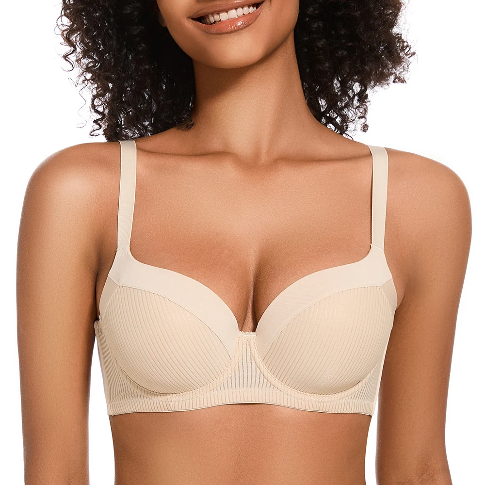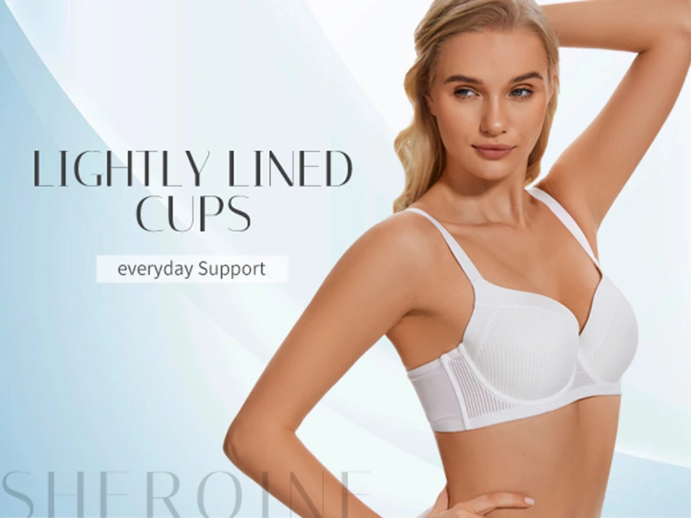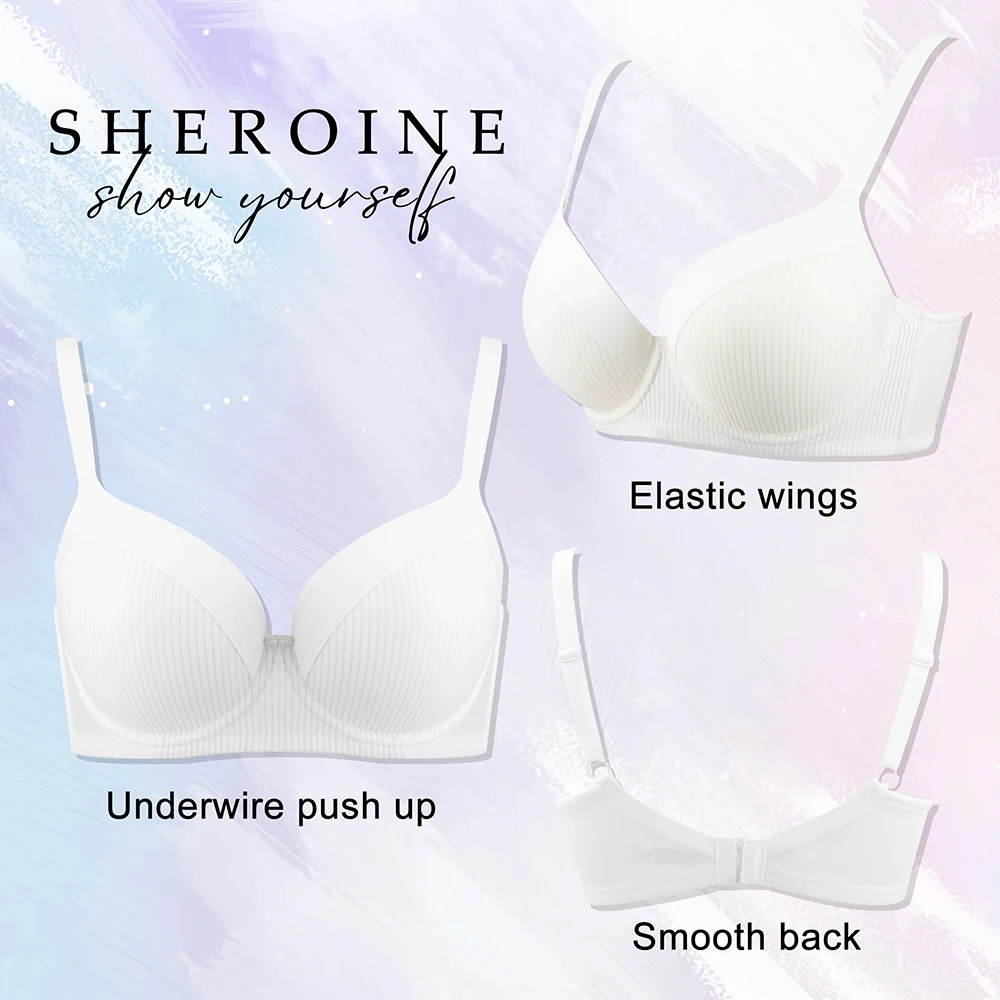 Sheroine Plus Size T-Shirt Bra, Push Up Underwire Lightly Padded Full Coverage Plunge Bras for Women Supportive Comfort