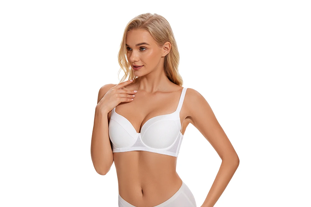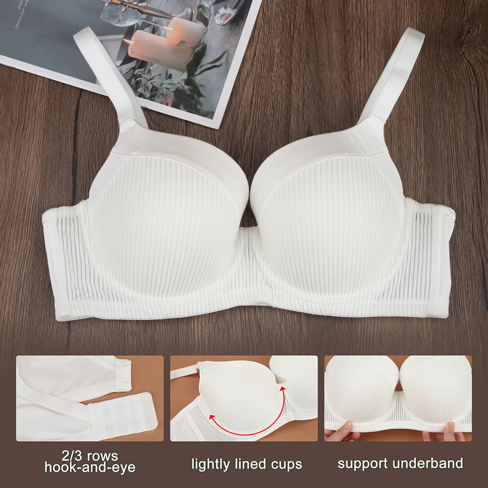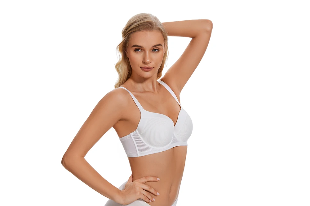 High side wings with stretch wide band deliver enough support in comfort. Soft bra is a great fit, especially for small and plus size bust ladies