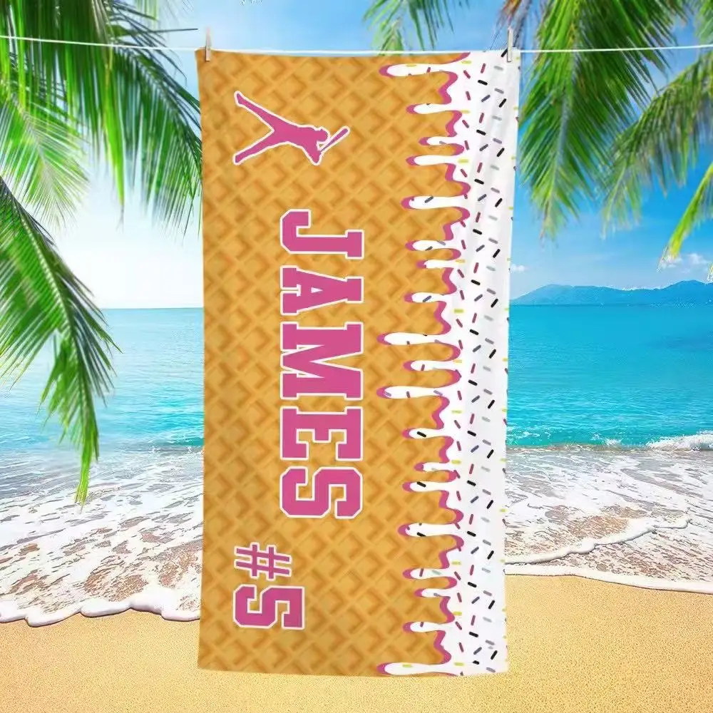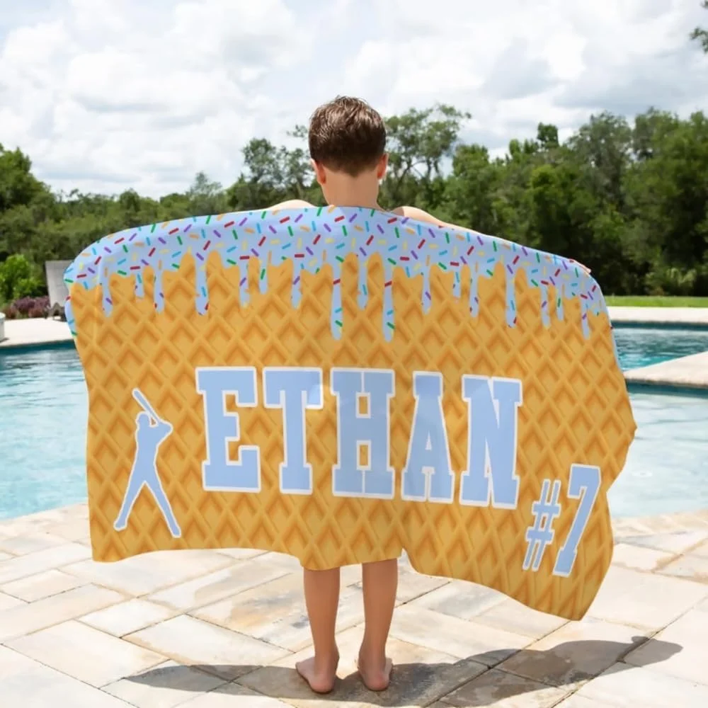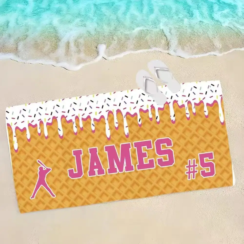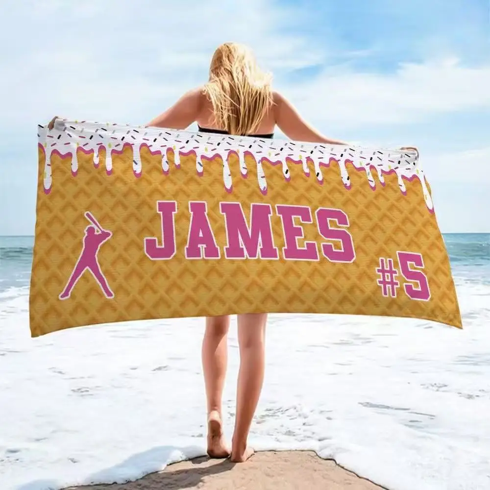 Ships Next Day Personalized Ice Cream Drip Baseball Beach Towel For Boys Drip Beach Pool Towel Team Gift Youth Baseball Gift