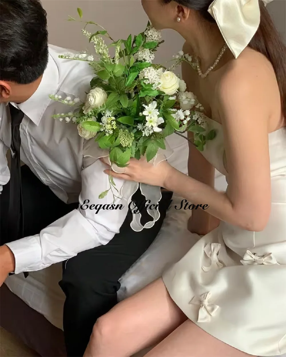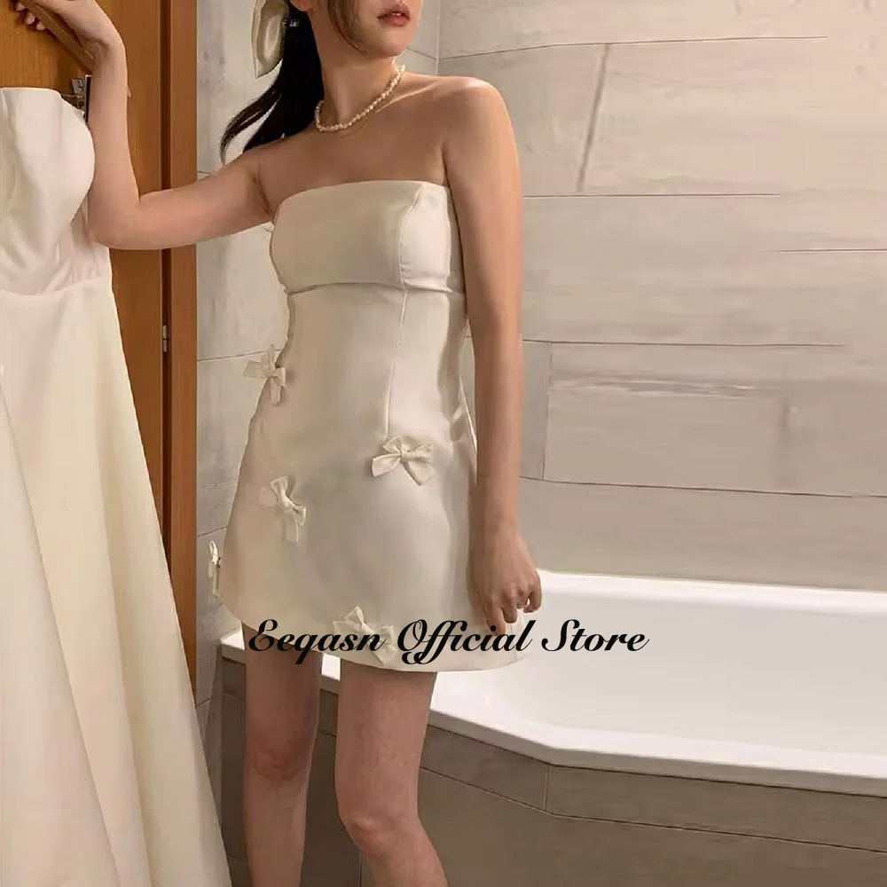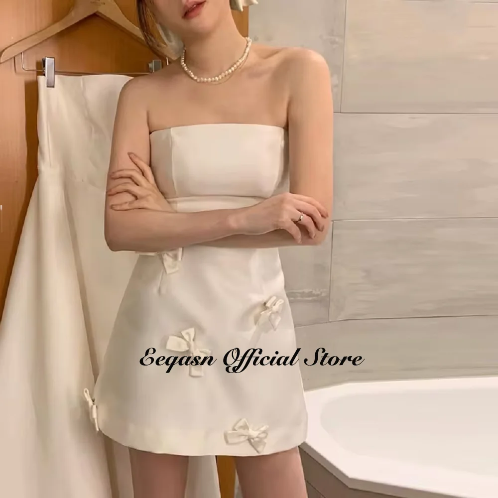 Short Prom Dresses Cute Satin Women Cocktail Dress Strapless Ribbons Wedding Gown Mini Formal Event Night Gowns Customized