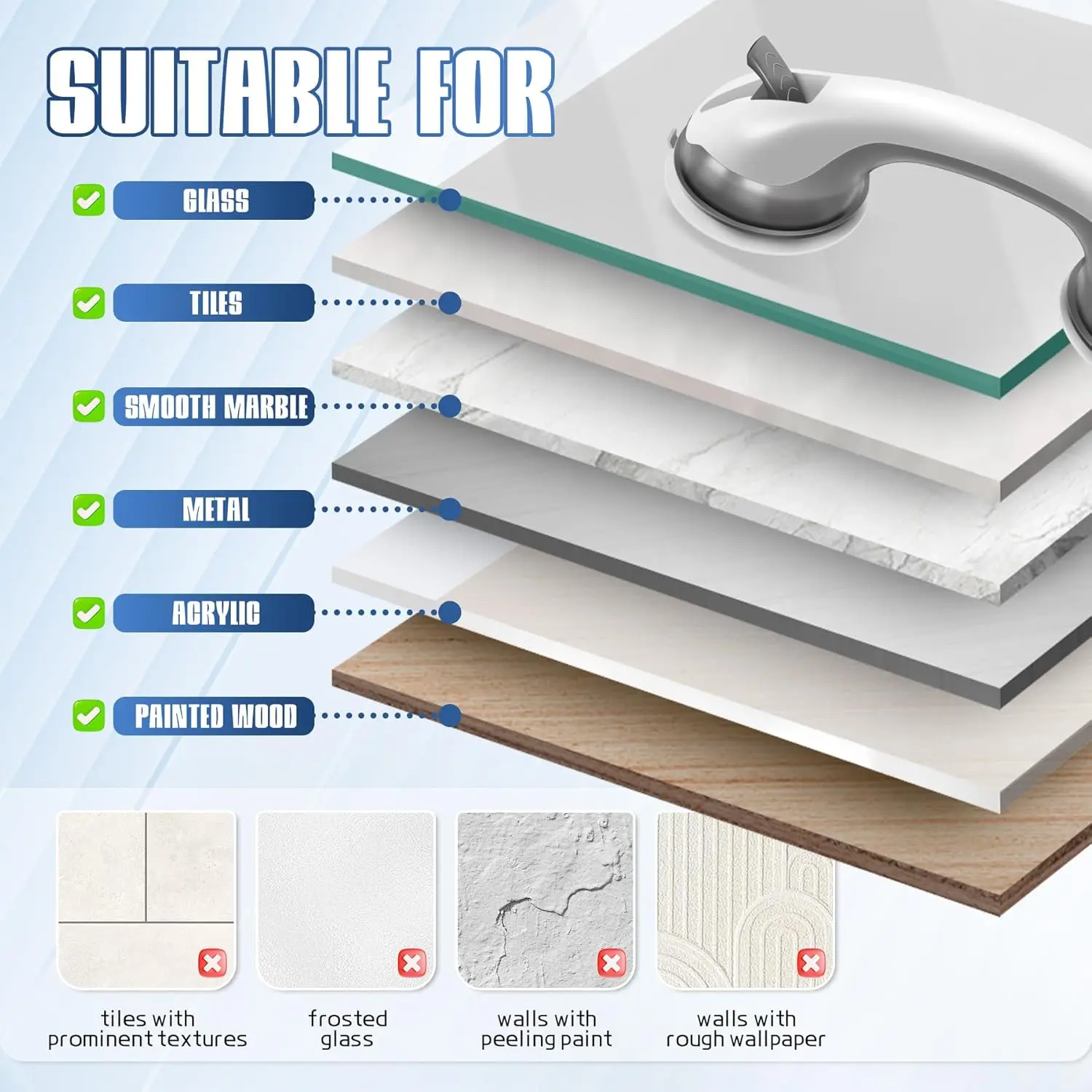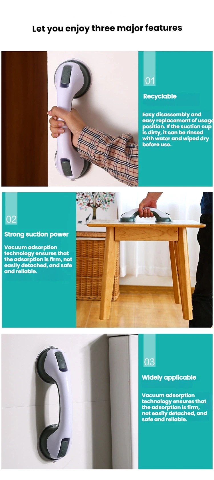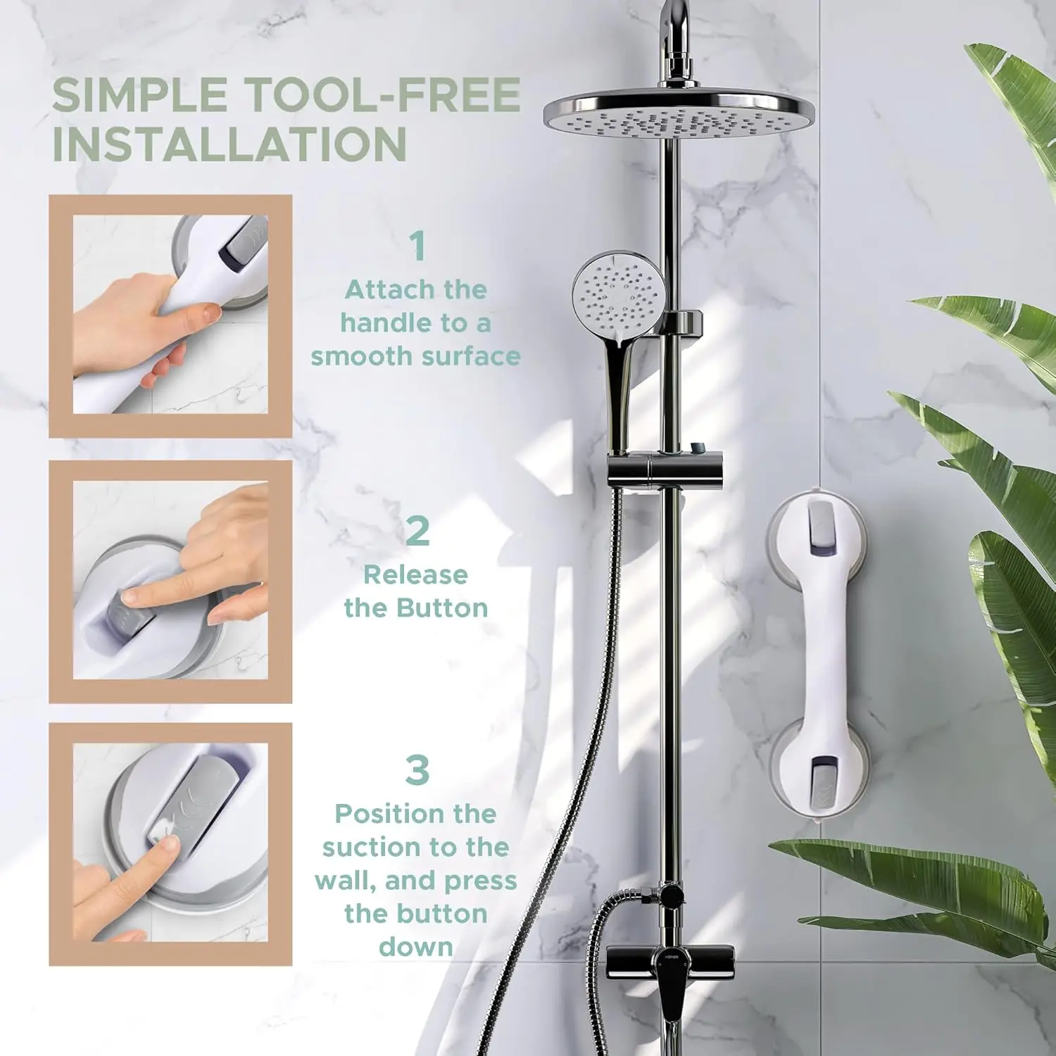 Shower Safety Handle, Non-Slip Bathroom Grab Bar for Elderly, Disabled, and Seniors Vacuum Sucker Suction Cup Handrail