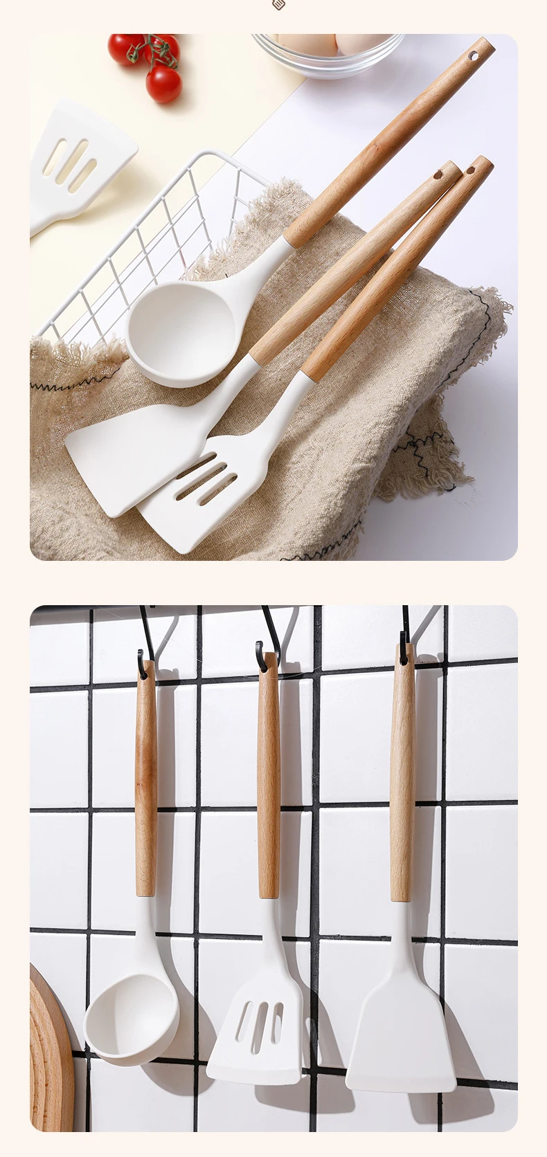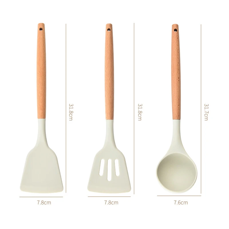 3 reviews for Silicone Kitchen Tools Wooden Handle Kitchenware Set Non stick Pot Wooden Handle Silicone Scoop Kitchen Utensils Set