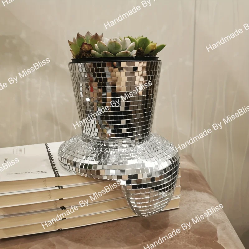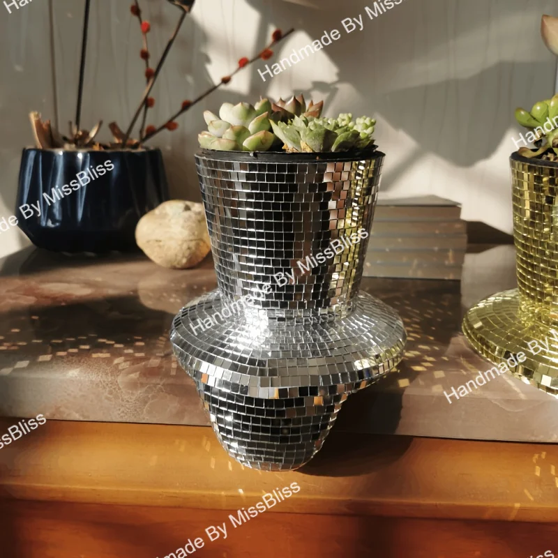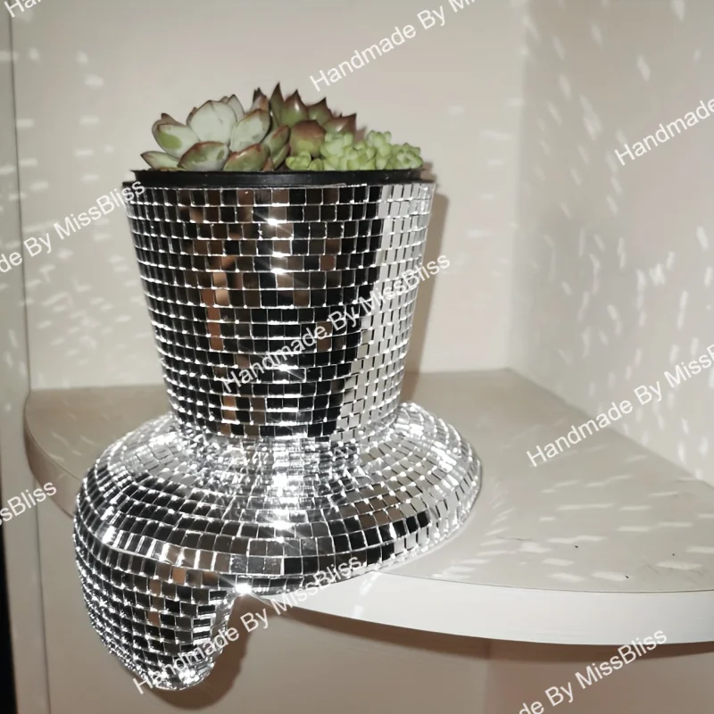 Silver Melting Disco Ball Drippy Planter Mirrored Metallic Home Decor Melted Golden Pot Mondern Table Decorations Gardening