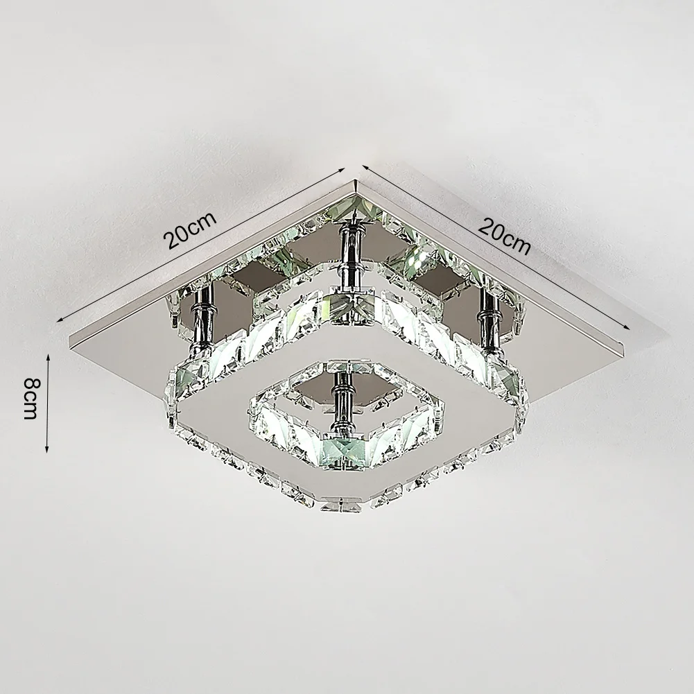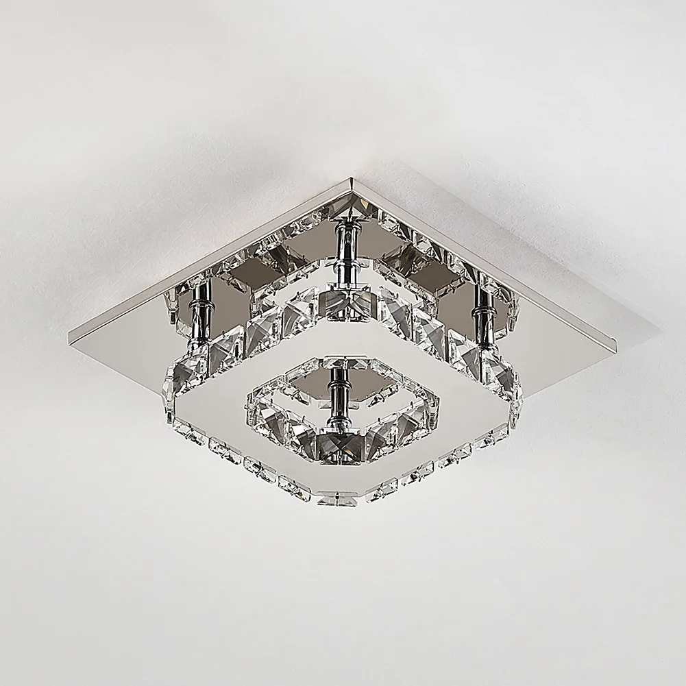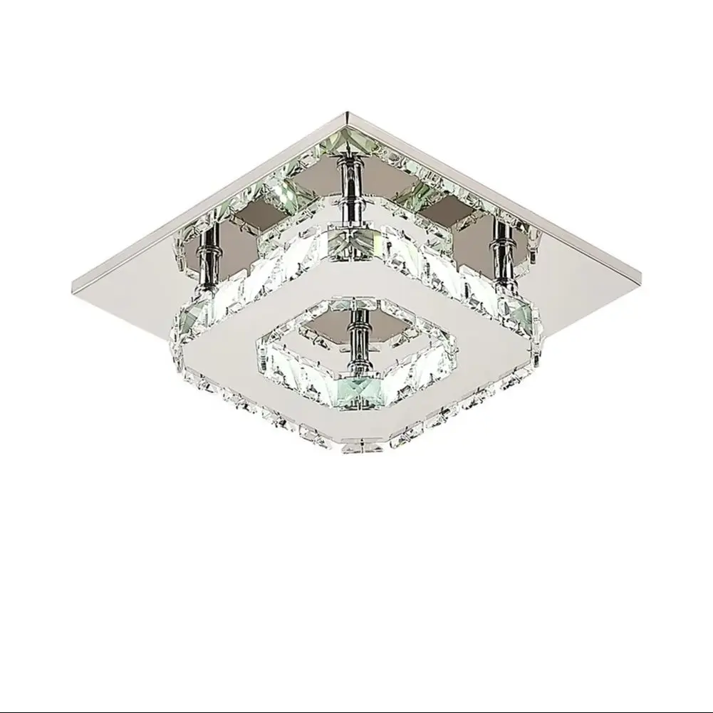 Single-Tier Crystal Ceiling Light 12W LED Cool White Polished Chrome, Semi-Flush Mount for Low Ceilings 20x20x8cm