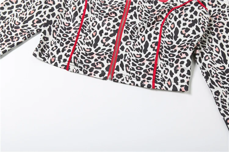 Sisterlinda Leopard Letter Tracksuit Women 2 Piece Set Zip Crop Jacket+Metal Sash Leggings Sporty Matching Stretch Streetwear