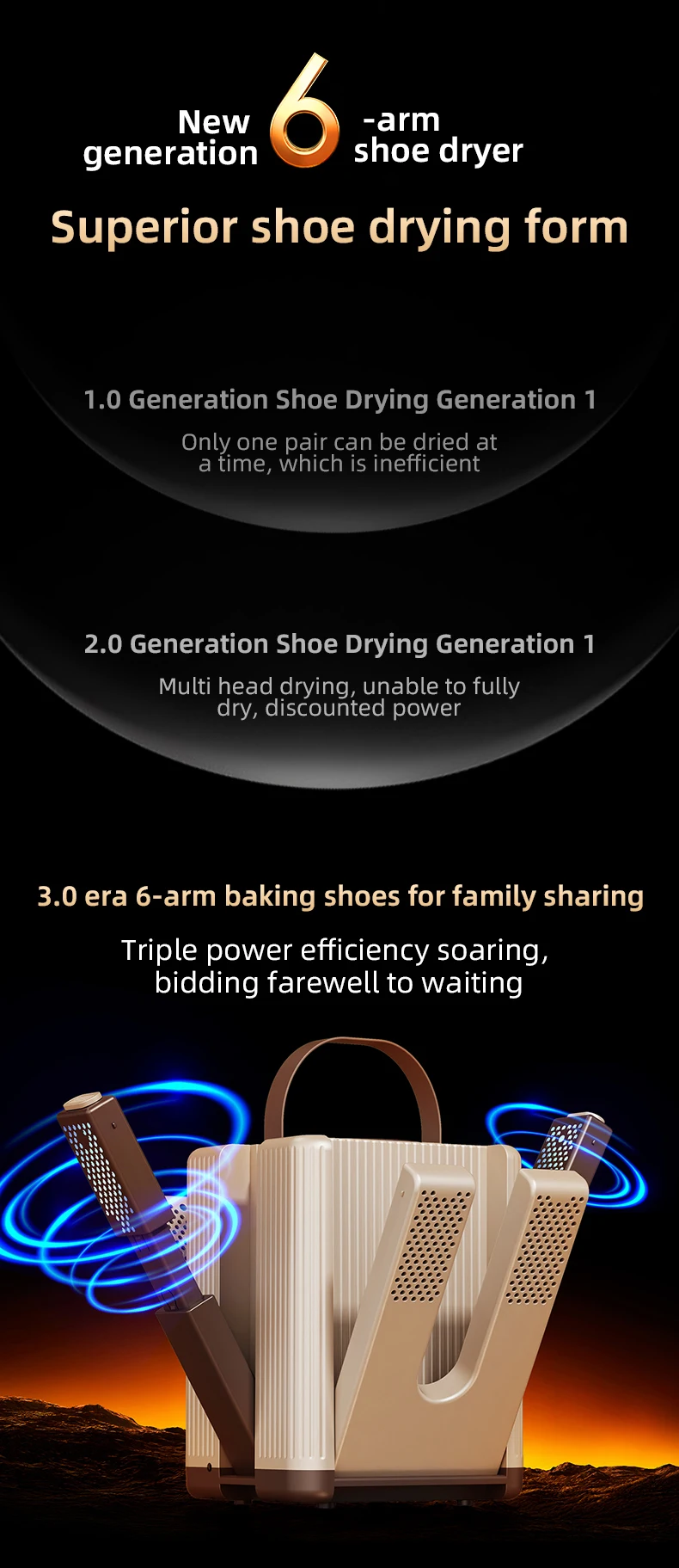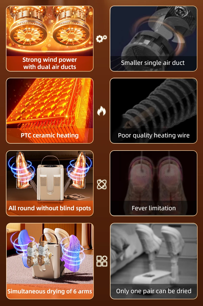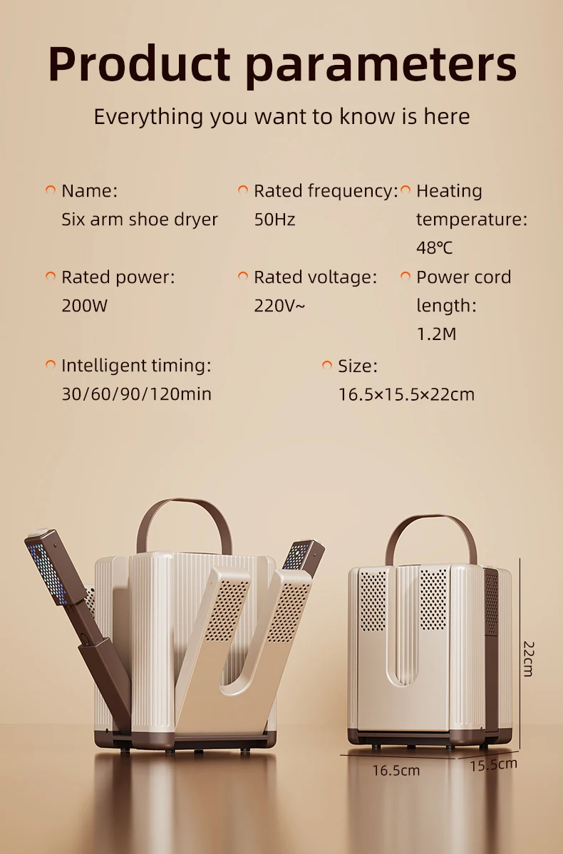 Six Arm Shoe Dryer Foldable Electric Shoe and Boot Dryer Timing Control Household Shoe Warmer Portable Heater For Socks Boots