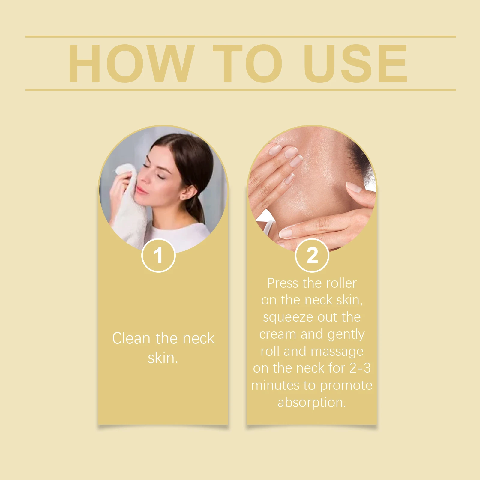 2.Press the roller on the neck skin, squeeze out the cream and gently roll and massage on the neck for 2-3 minutes to promote absorption.