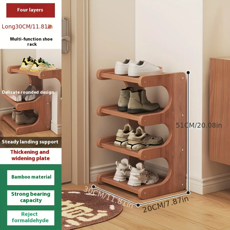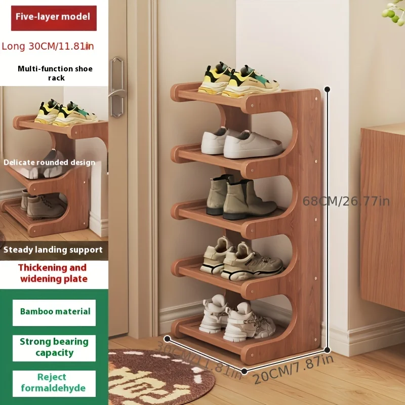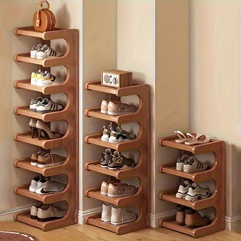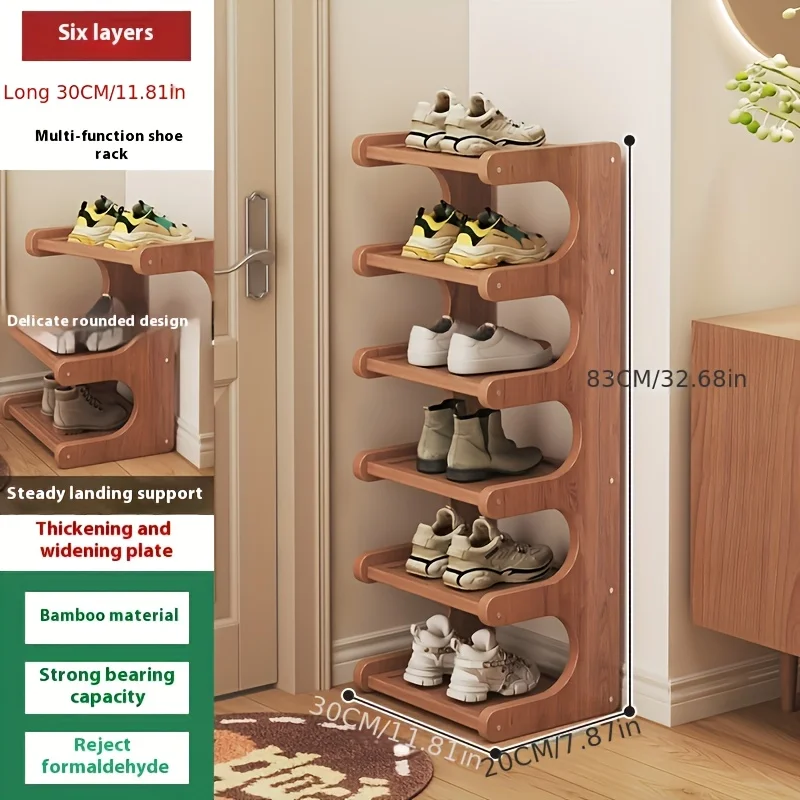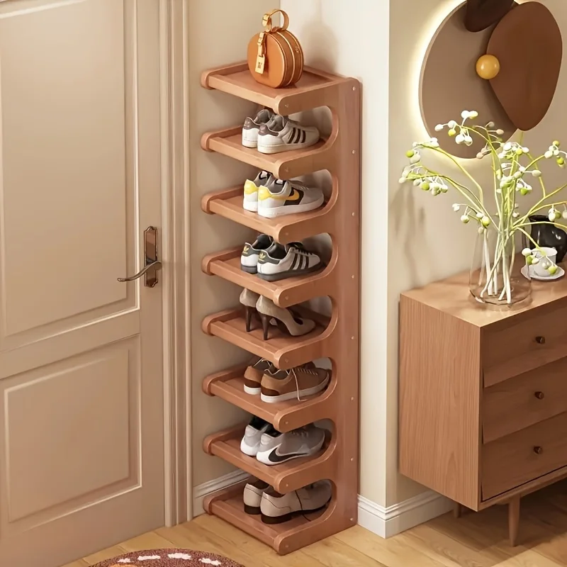 Slim Bamboo Shoe Rack | Durable Wood, Light Brown | Space-Saving Storage for Hallway & Dorm