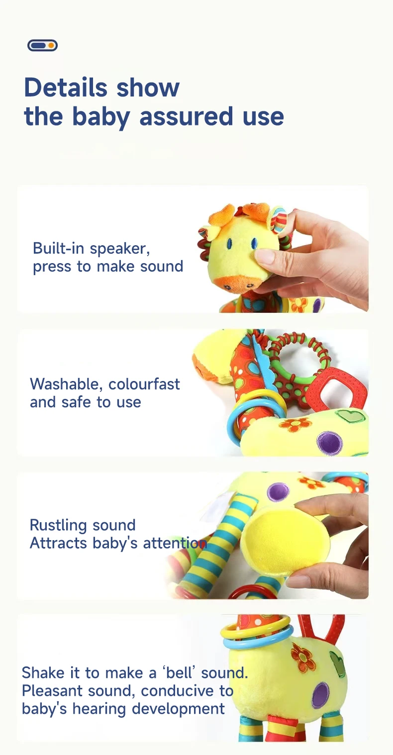 Baby like to be able to shake the sound and squeeze the sound toys, so simple and different touch and sound toys are very suitable.