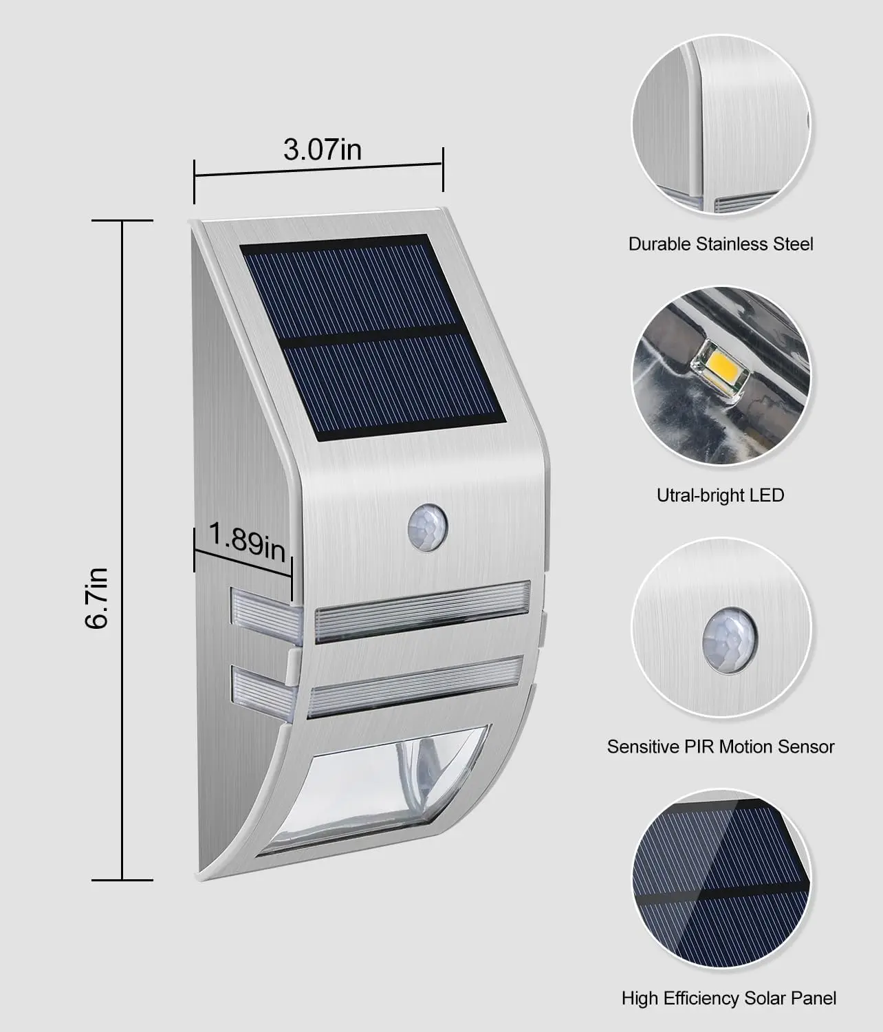 Safety Lighting for Multiple Scenarios: Solar fence lights are suitable for a variety of applications such as fences, railings, decks, porches, gate entrances and walls. The solar lights provide security lighting when someone is approaching and are perfect for close up lighting, providing peace of mind for your lighting experience.