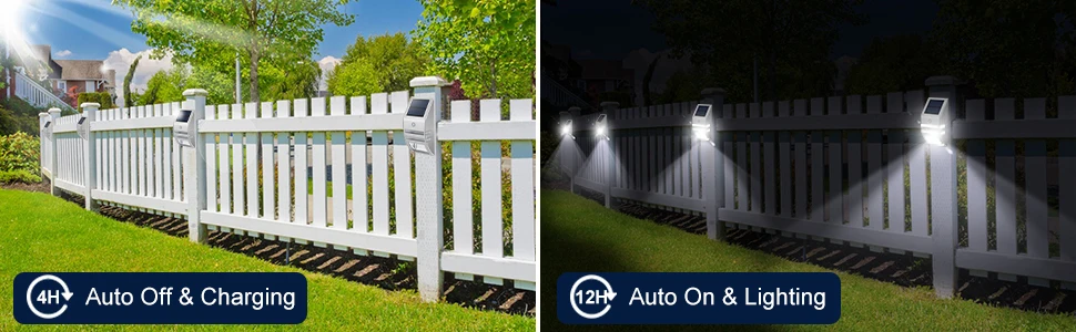 Fast Charging & Long-lasting Lighting: Equipped with a high-conversion efficiency solar panel, the Motion Sensor Solar Fence Lights provide up to 10-12 hours of nighttime illumination after only 4-5 hours of charging during the day, making it easy to enjoy long-lasting, bright illumination in the darkest of nights.