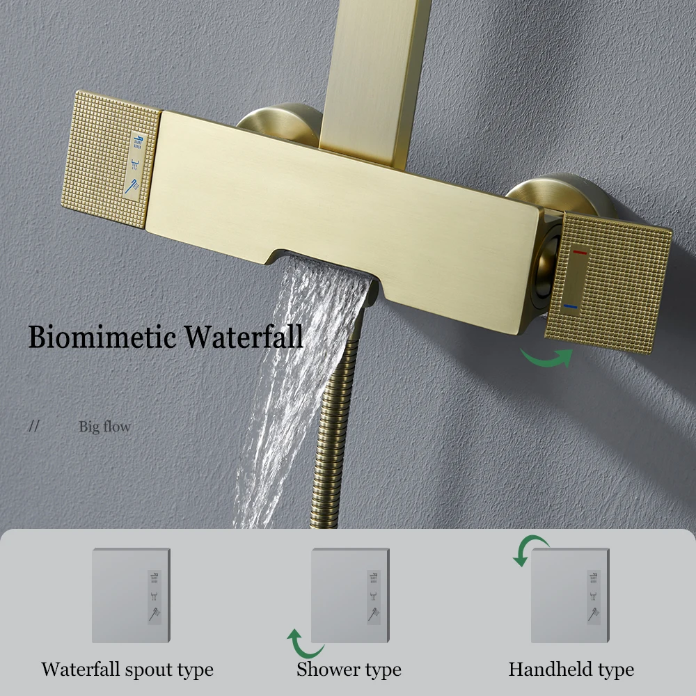 - 3-Functions: Rainfall overhead shower, handheld spray, tub spout. Double cross handles easily control water temperature and water flow