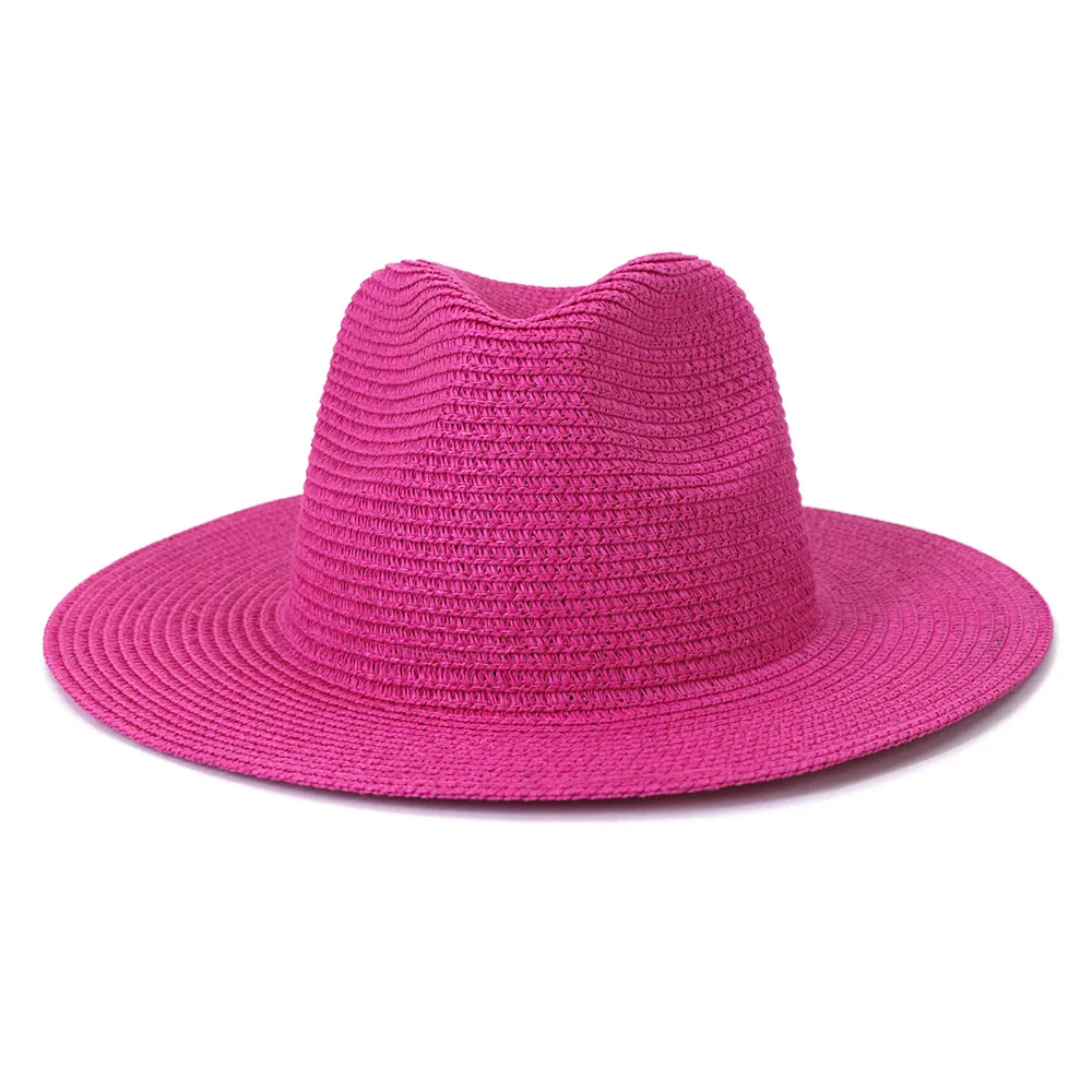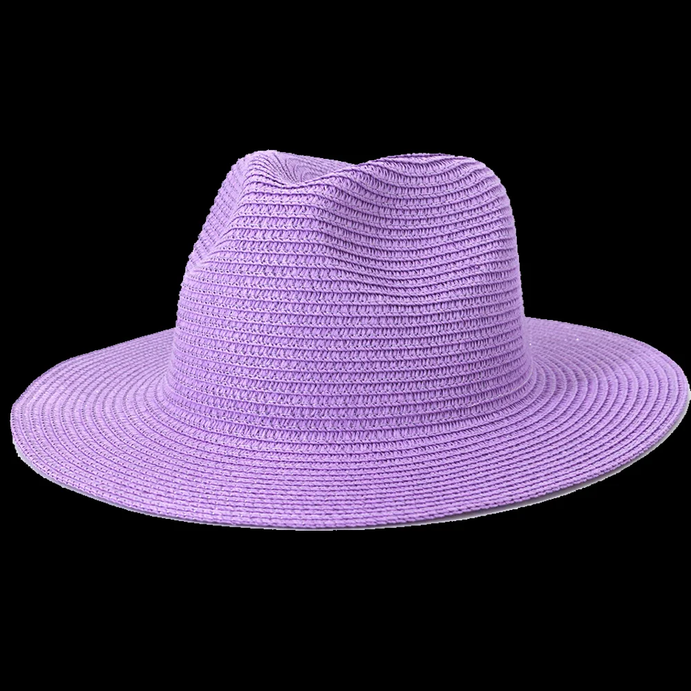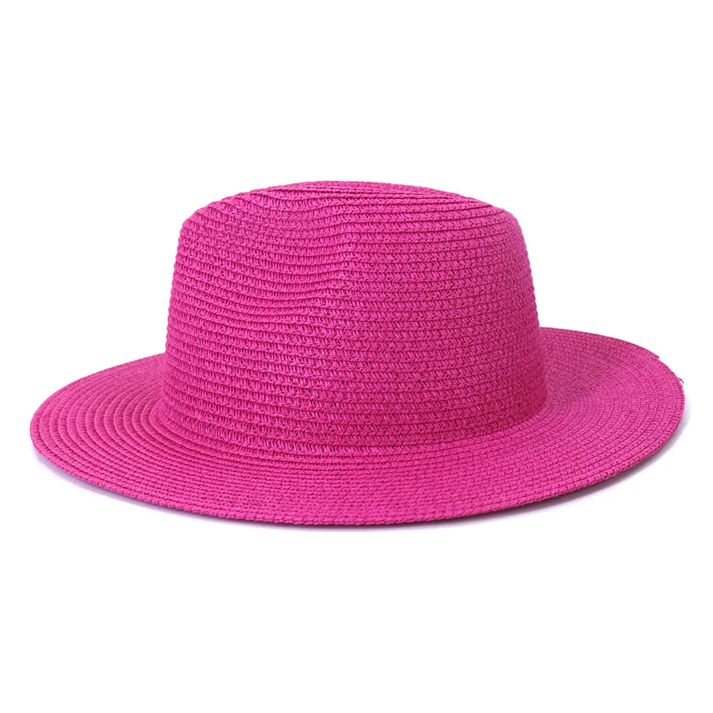 Solid color men’s and women’s hats New straw hat Yellow Macaron color Summer flat top straw hat Beach travel essential sun hat