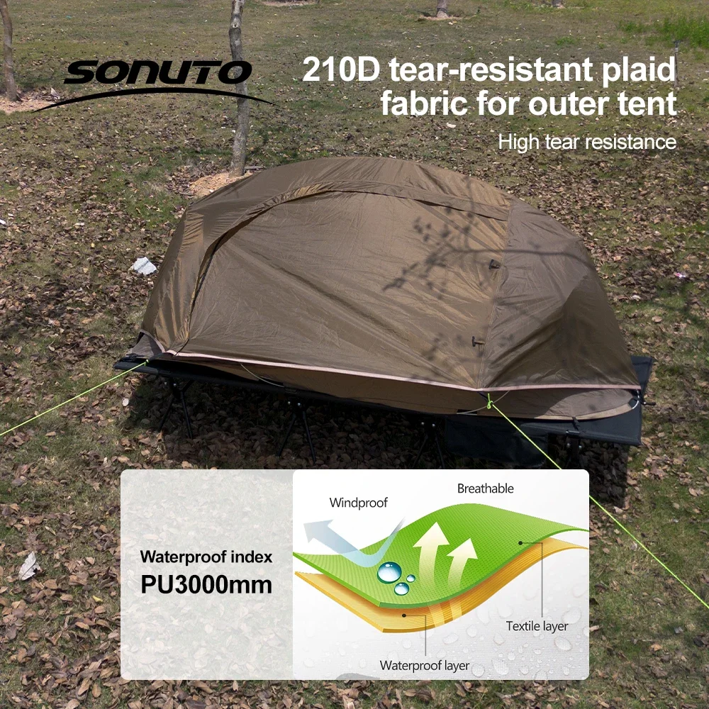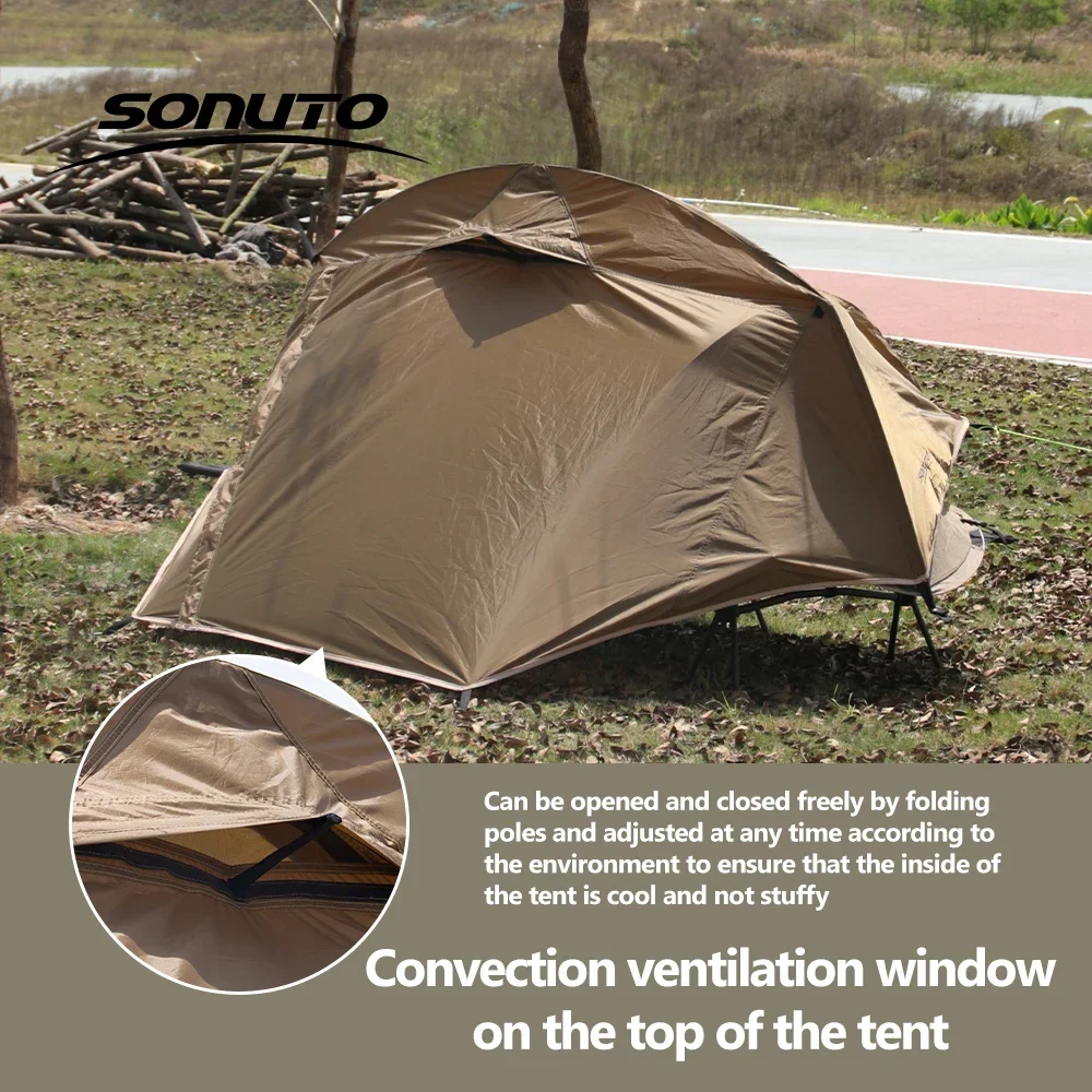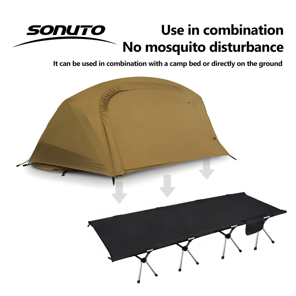 Sonuto 1kg Aluminum Poles Camp Bed Tent Waterproof Sunshade Single Camping Tent, Lightweight 210D Oxford Windproof & Portable
