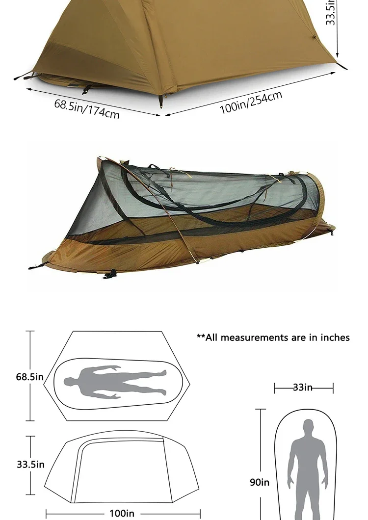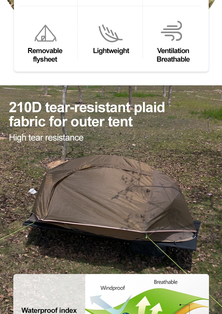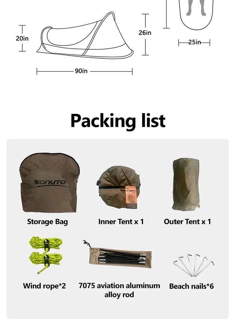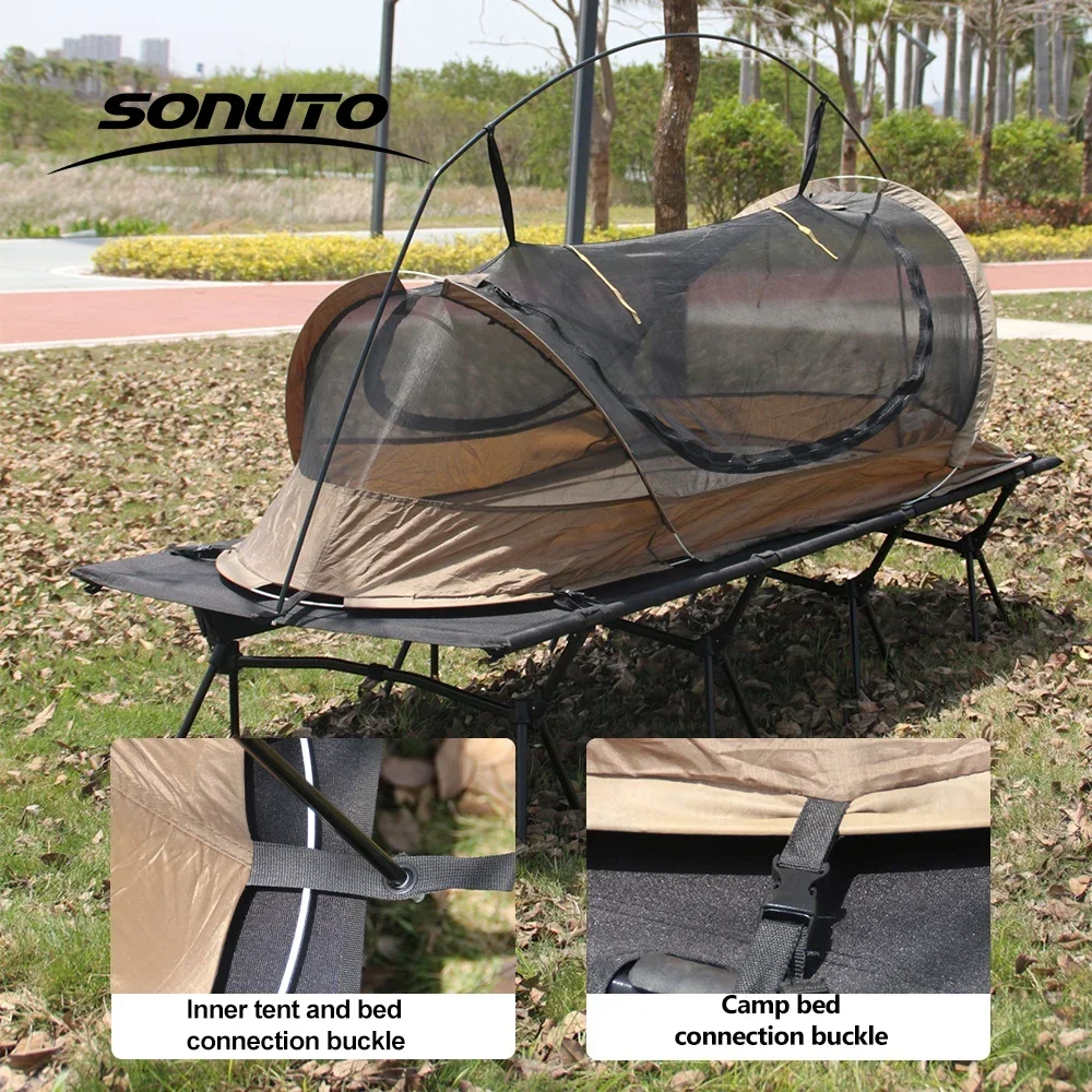 Sonuto 1kg Aluminum Poles Camp Bed Tent Waterproof Sunshade Single Camping Tent, Lightweight 210D Oxford Windproof & Portable
